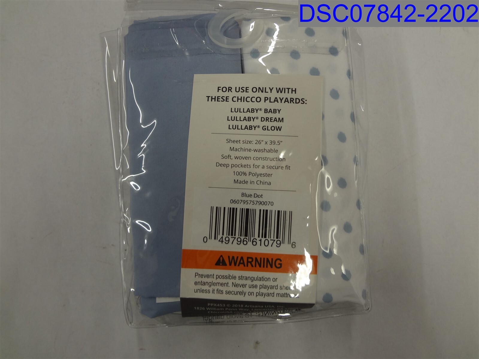 как выглядит Chicco Lullaby Playard Sheets Pack of 2 Blue/Blue Dot Fitted Sheets 049796610796 фото