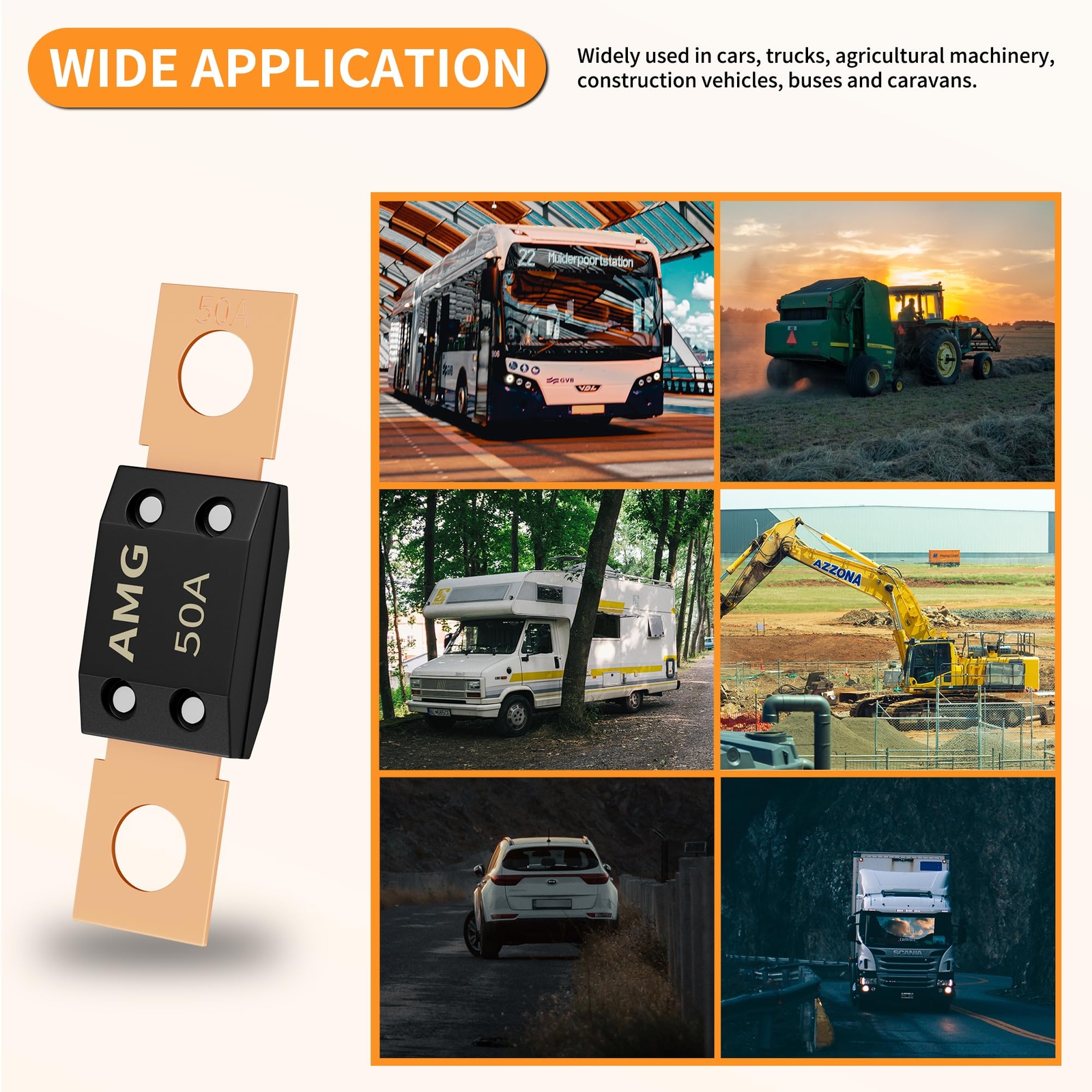 50A MEGA Fuse, High Current Bolt Mount Automotive 50 Amp MEGA/AMG Fuse for Cars,