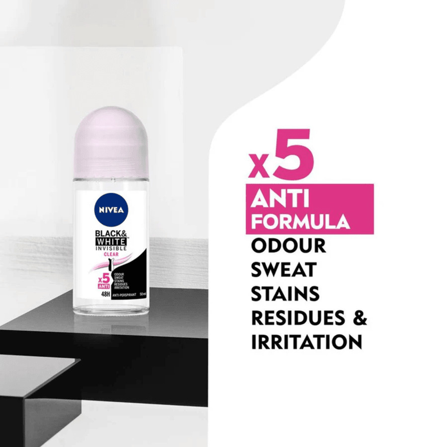 Nivea Black White Invisible Clear Deodorant, 1.7oz 50ml Pack of 3