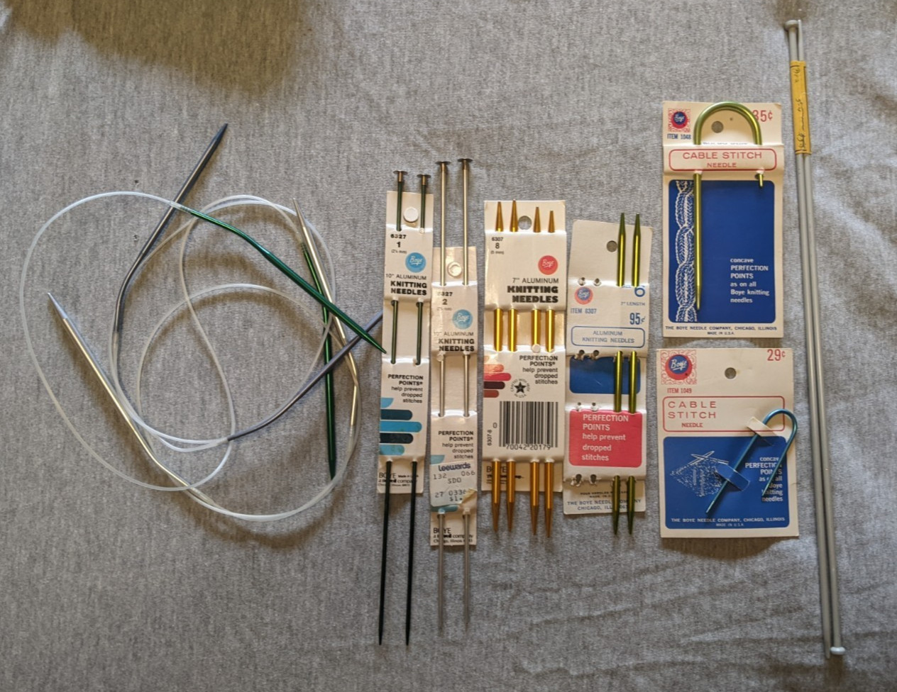 Vintage Knitting Needle Case with 95 Needles Cable Stitch Circular Some New