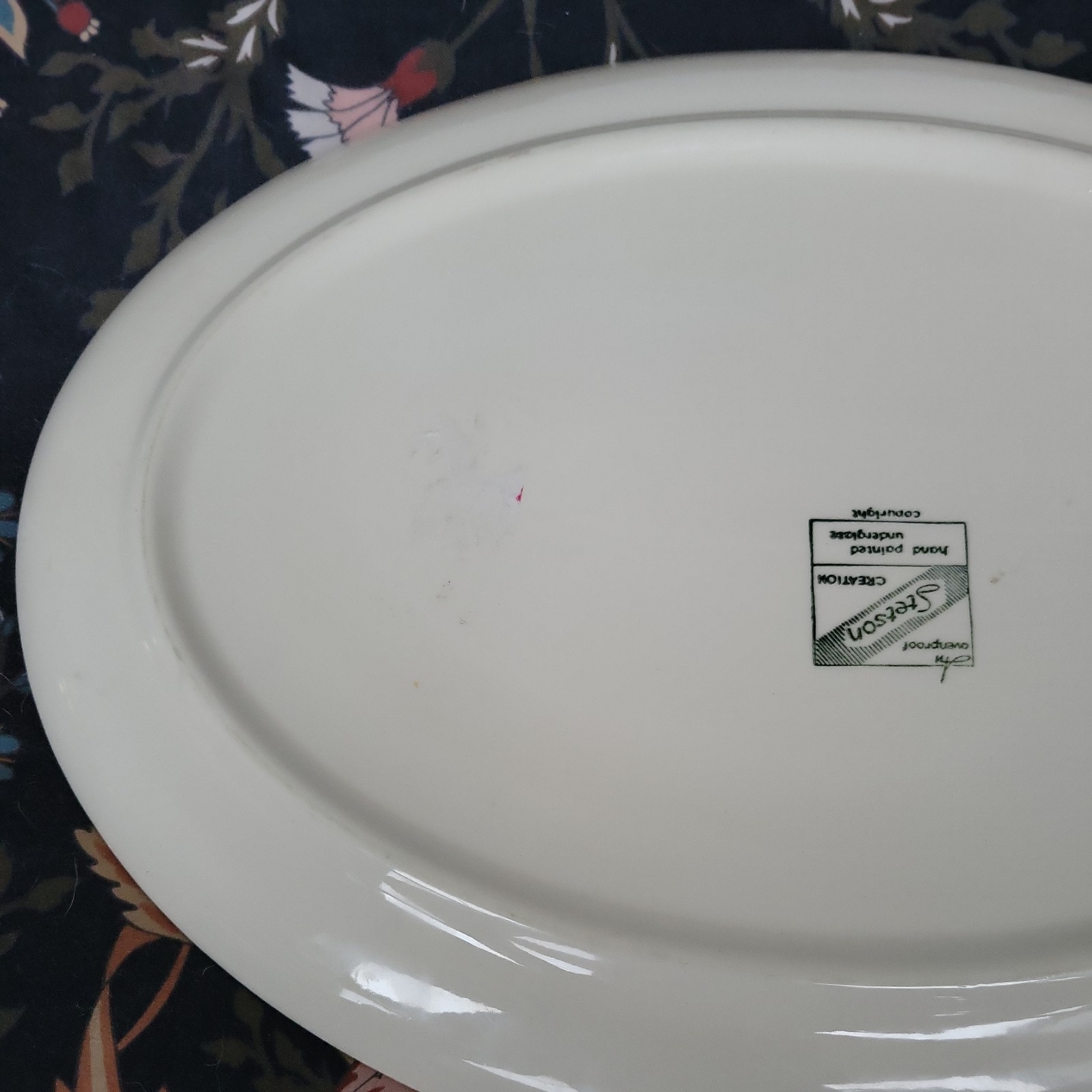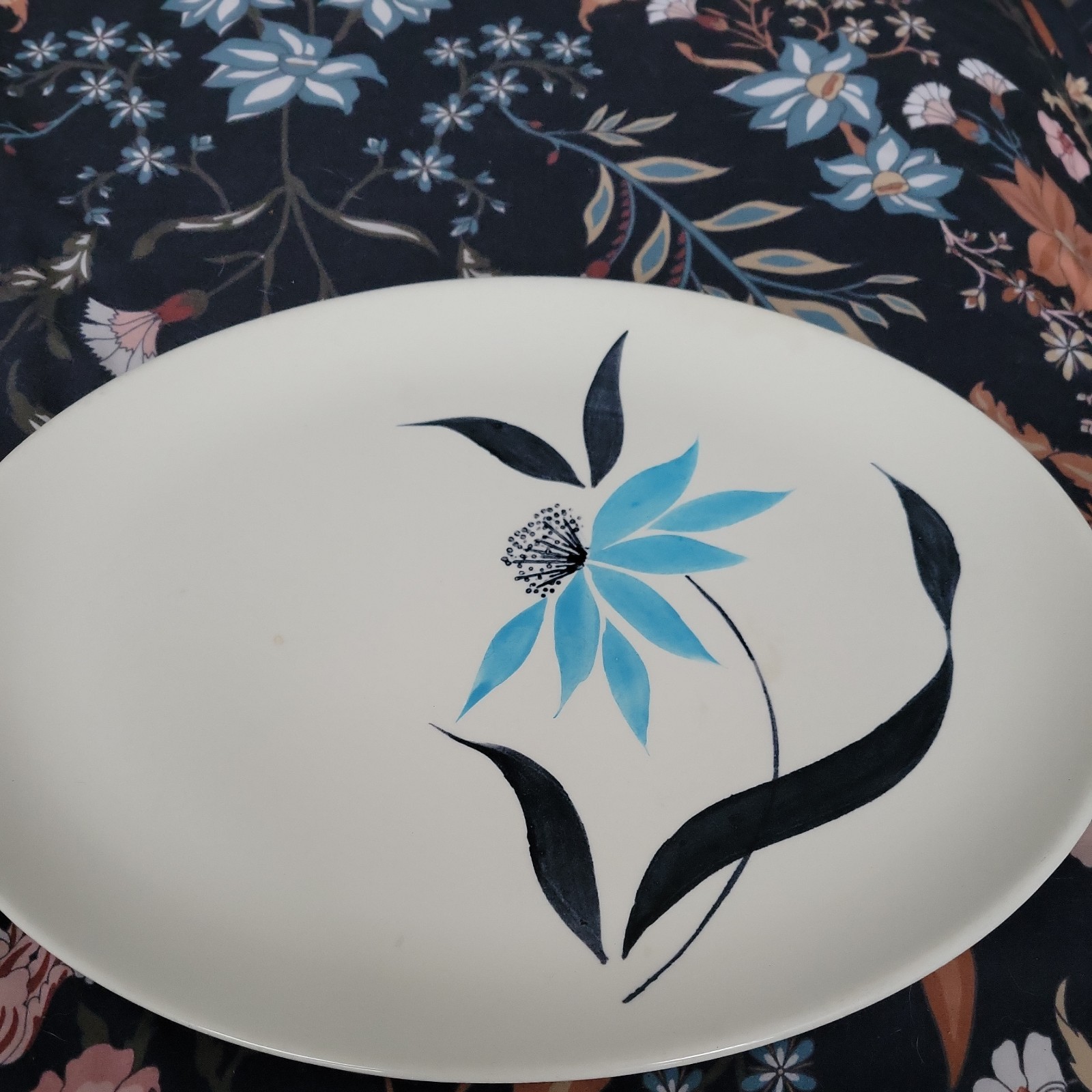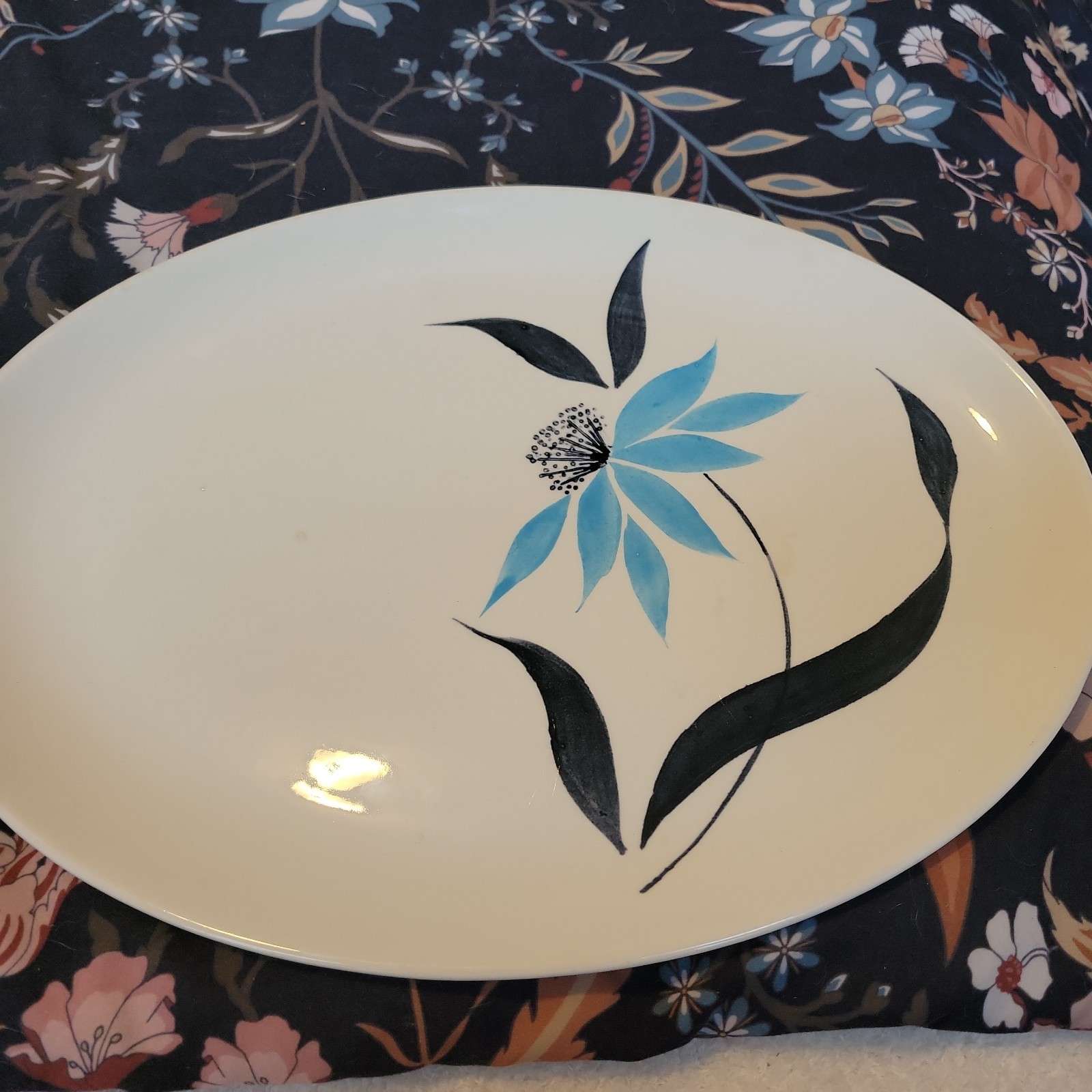 как выглядит Vintage Stetson MCM Hand Painted Blue Floral 13.5" x 10" Oval BF Platter фото
