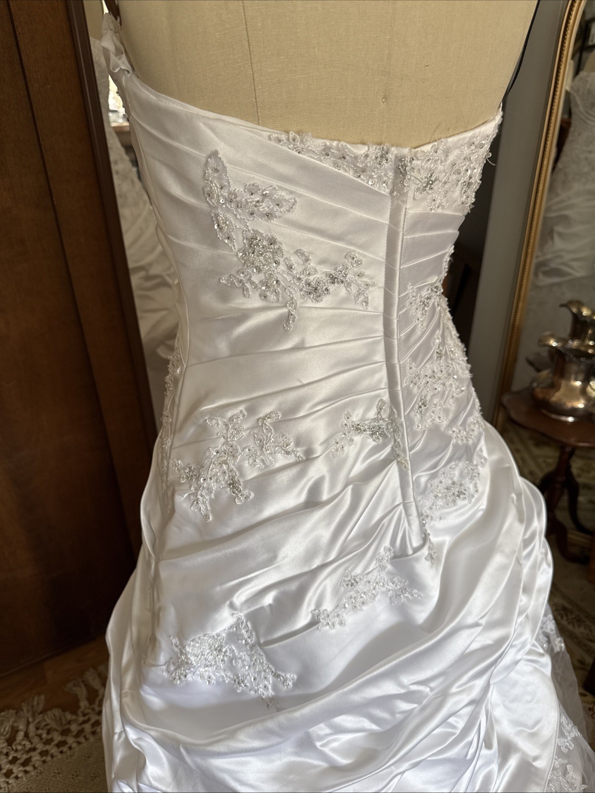 Size 4 David s Bridal White Wedding Gown v3179 Strapless Beading Tulle Lace