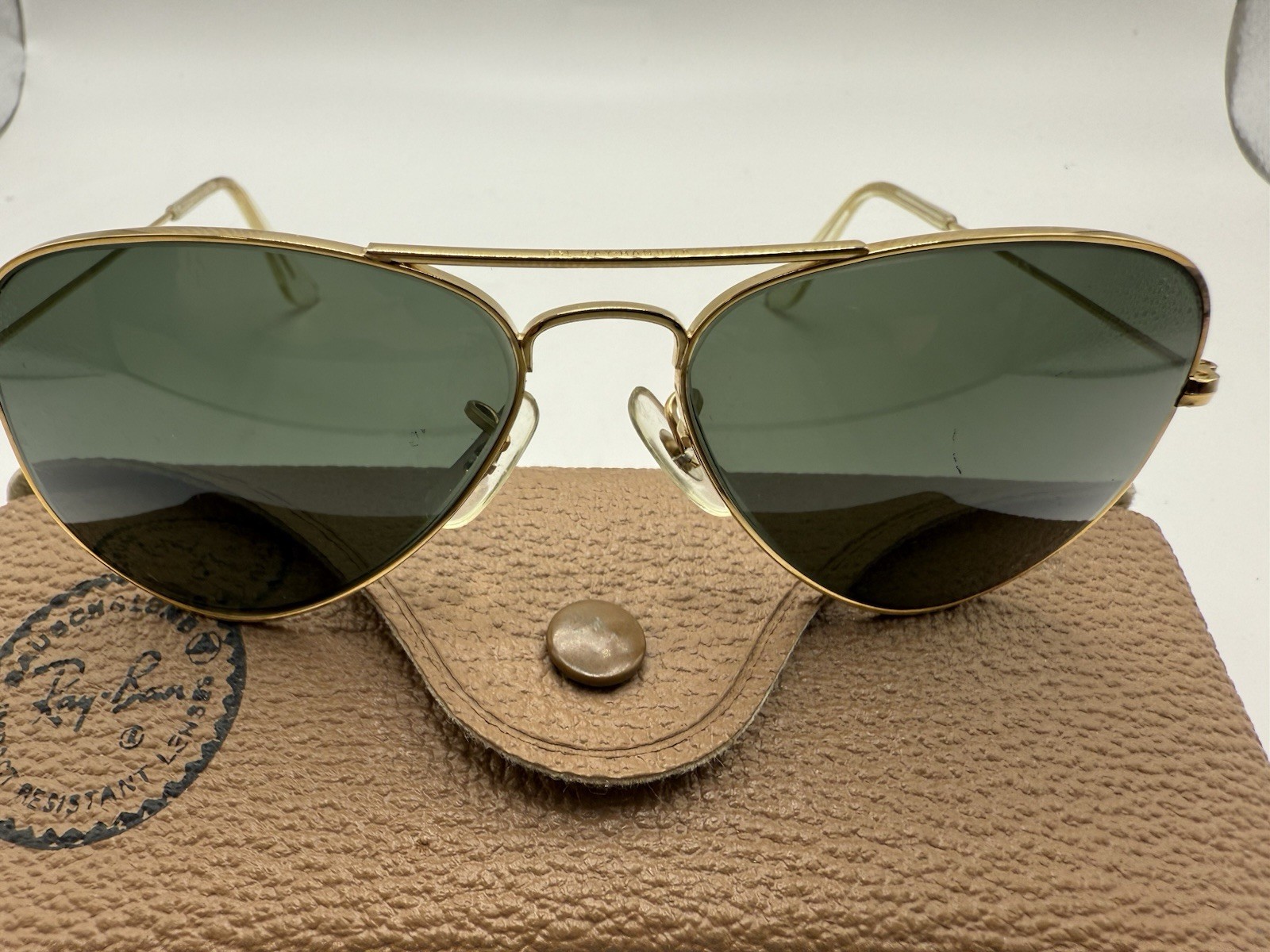 Vintage B L Ray Ban Aviator Sunglasses USA Etched BL Gold Frame 58-16 W Case
