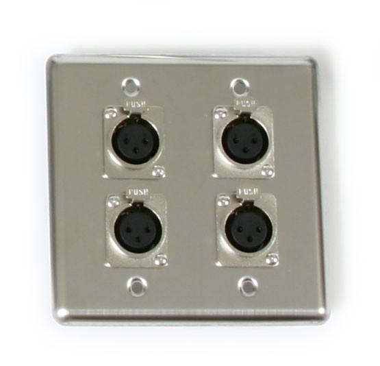 4 Stainless Steel Quad Wall Plate w/ 4 XLR Mic Female Connectors