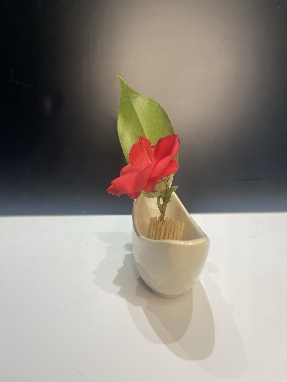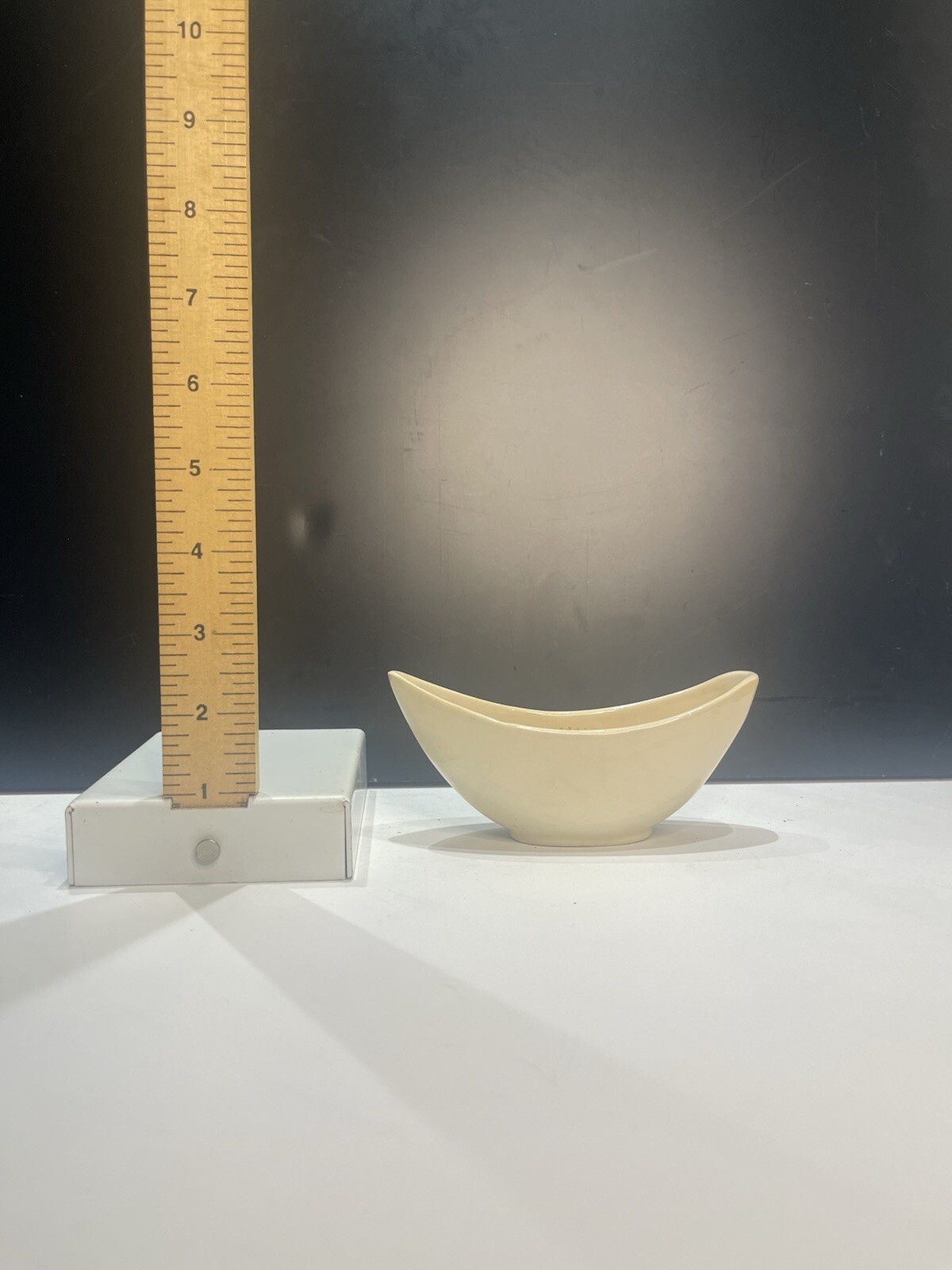 как выглядит Vintage Petite Thick Glazed Ivory Vessel Flower Metal Flower Frog Ikebana фото