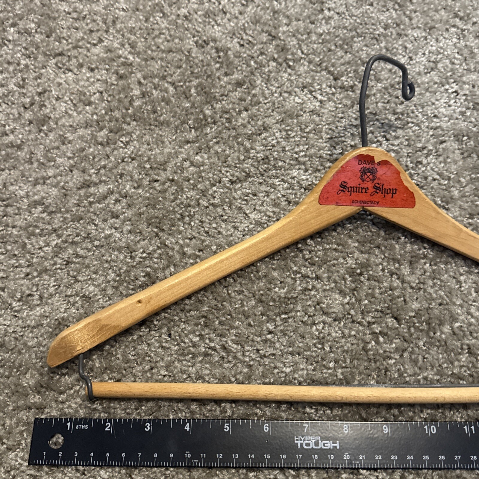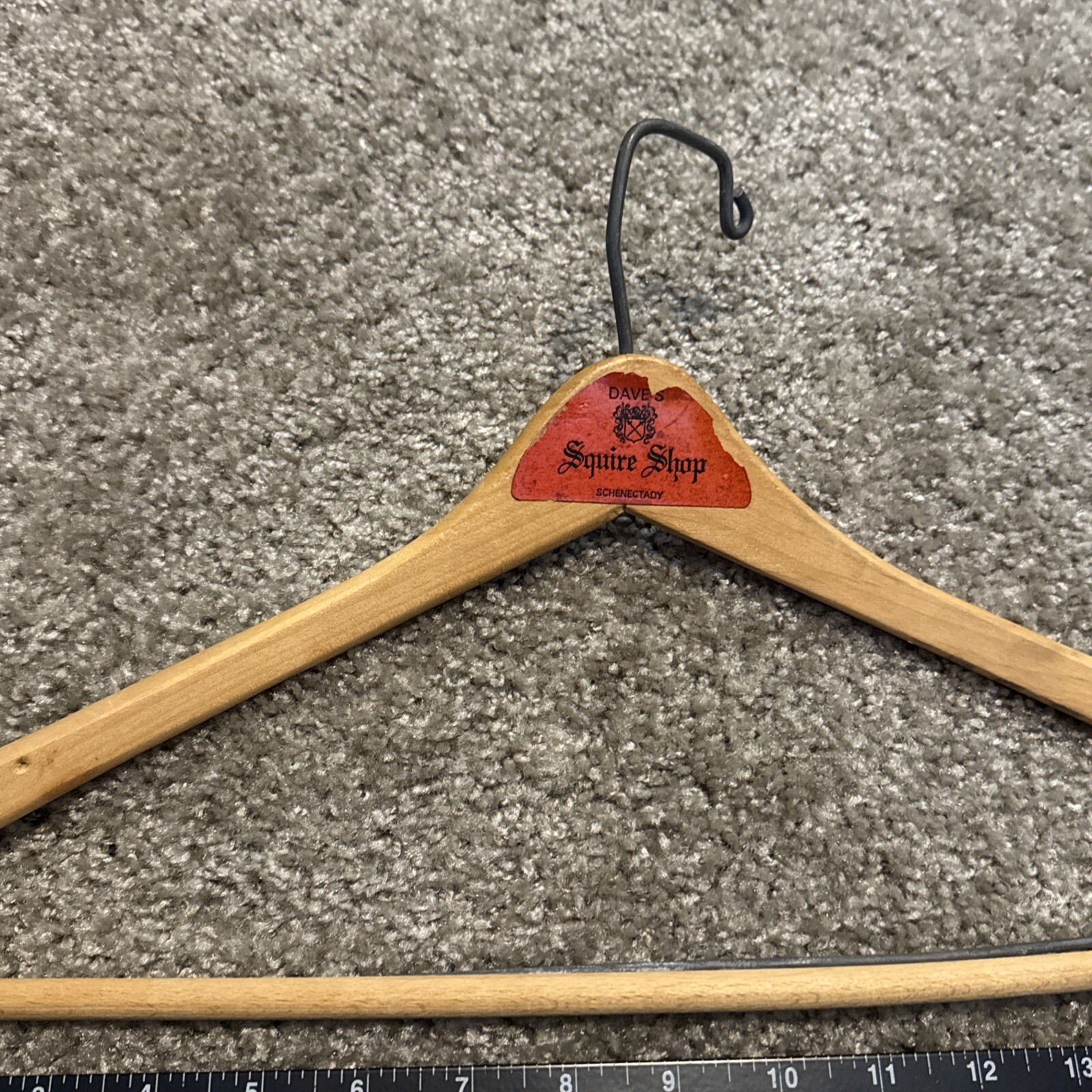 Vintage MCM Wooden Coat Jacket Hanger Dave s Squire Shop Schenectady New York