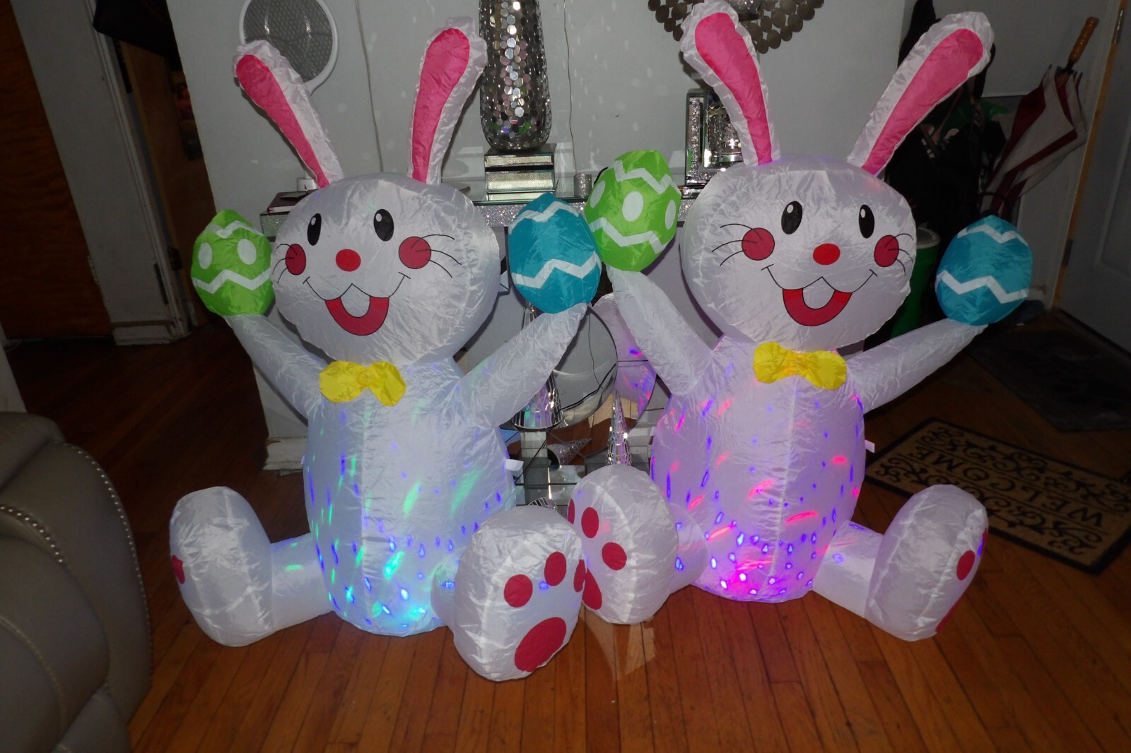 как выглядит SET OF 2 ROTATING COLORFUL LED INFLATABLE4FT EASTER BUNNY YARD DECORATIONS фото