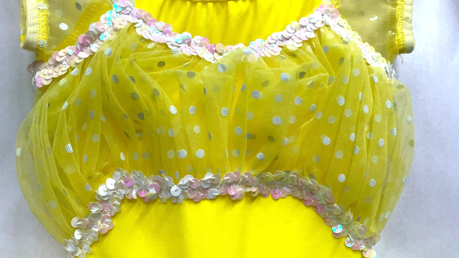 как выглядит Yellow Polka Dot Dance costume for girl performances dress Leotard 3 lairs Skirt фото