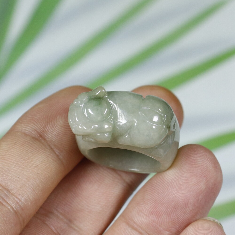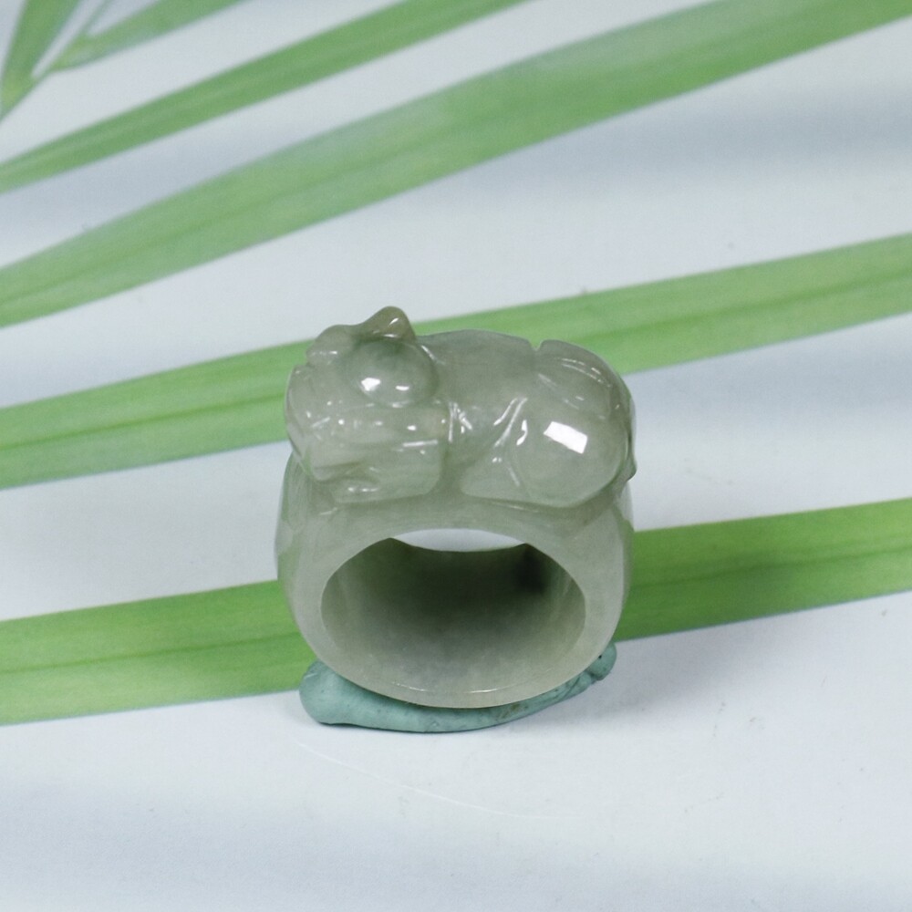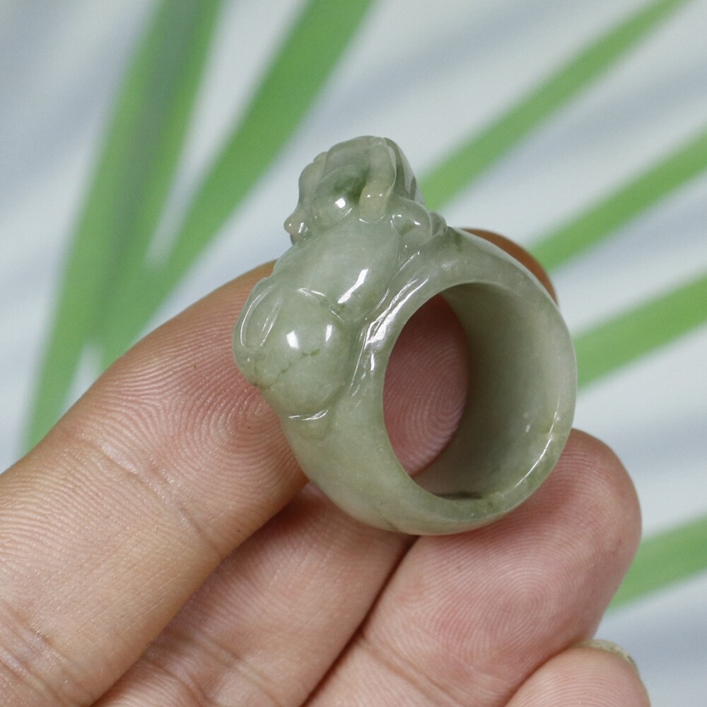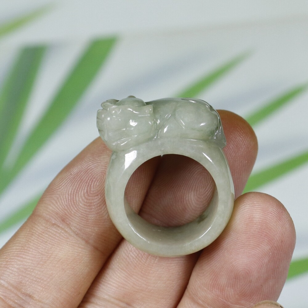 как выглядит USA 10.5 Certified Natural Genuine Type A Jadeite Jade PiXiu Ring 6336 фото
