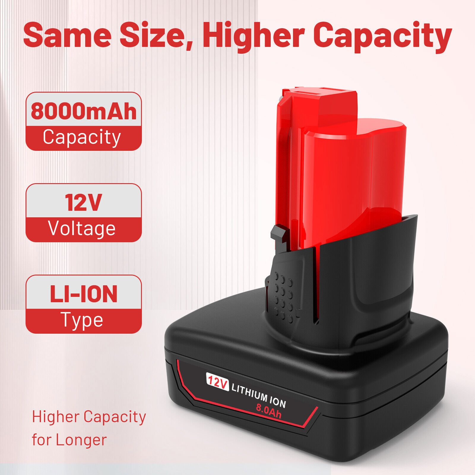 2Pack 8.0Ah Battery For Milwaukee for M12 LITHIUM Extended Capacity 48-11-2460