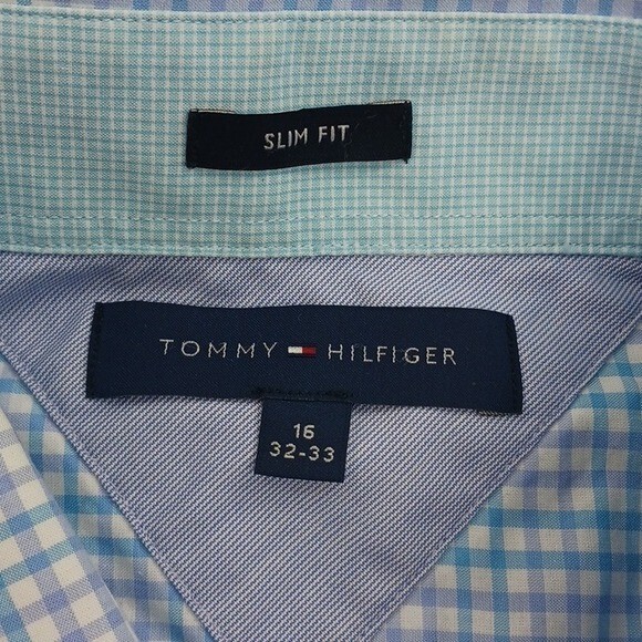 как выглядит Tommy Hilfiger Button Down Shirt Blue Plaid Long Sleeve Slim Fit Mens Size 16 фото