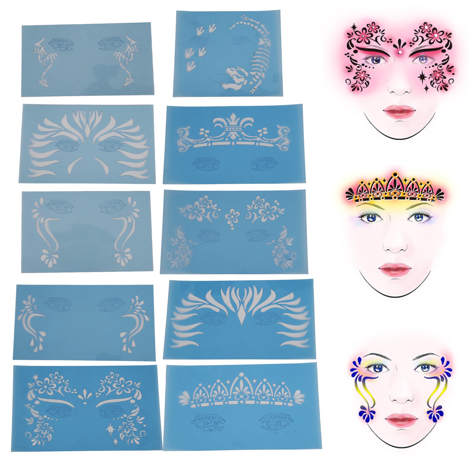 10 Sheet Face Paint Stencil PET Holiday Halloween Makeup Face Paint Template AP9