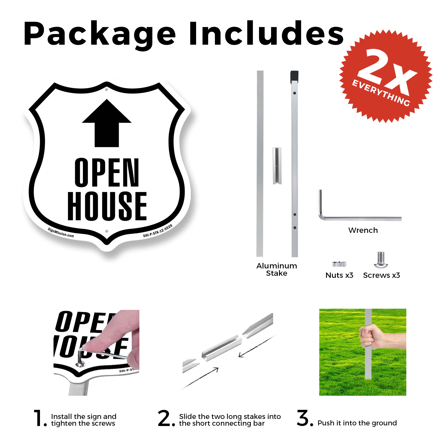 Open House Up Shield Shaped Sign With Stake Weather Resistant Crafted in the USA