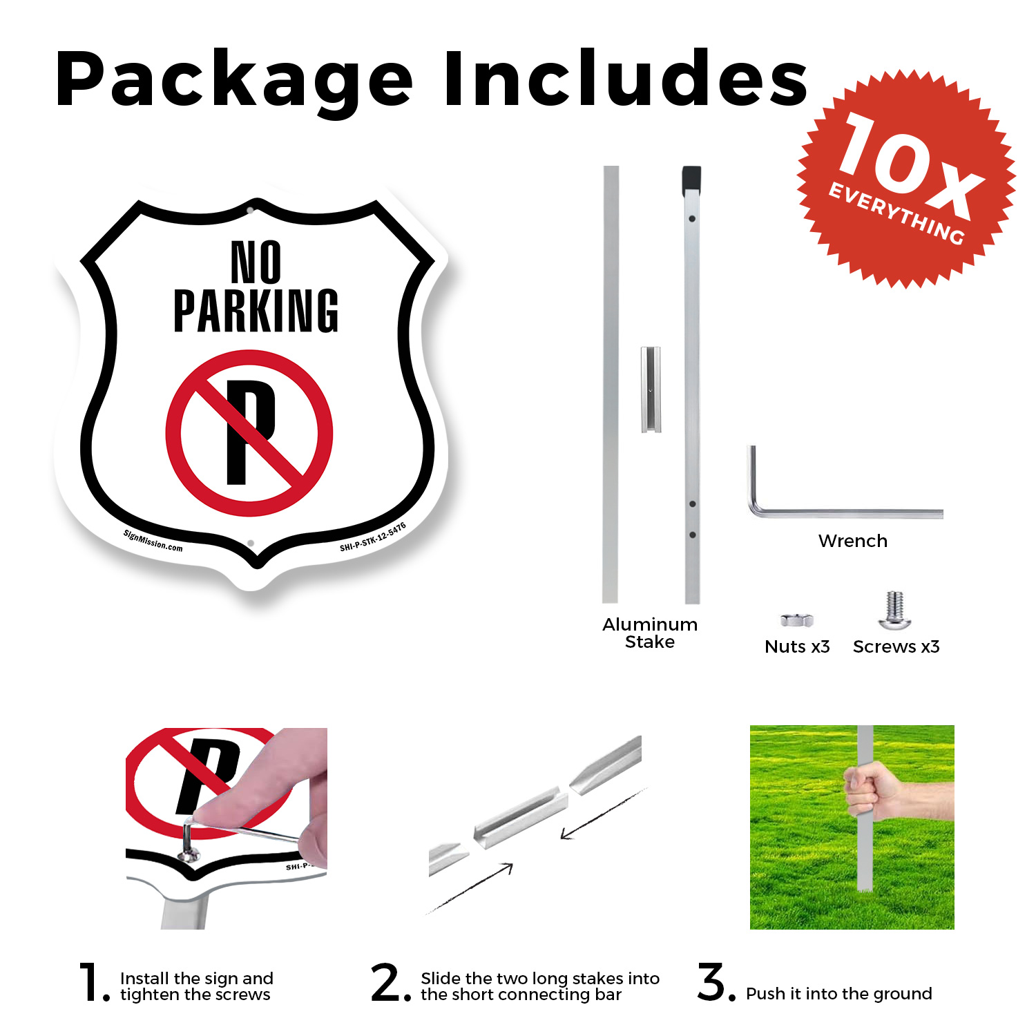 как выглядит No Parking Shield Shaped Sign With Stake Weather Resistant Crafted in the USA фото