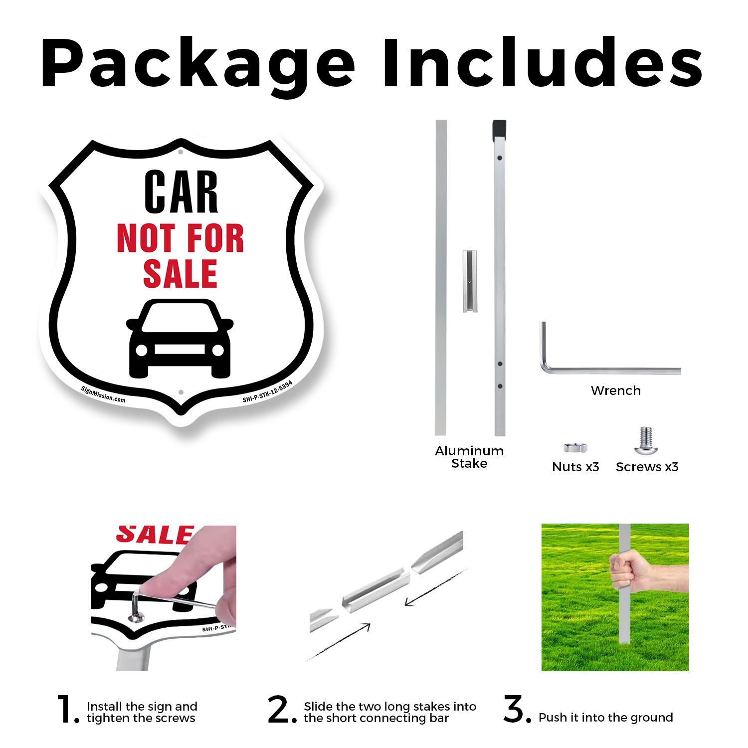 Car Not For Sale Shield Shaped Sign With Stake Crafted in the USA
