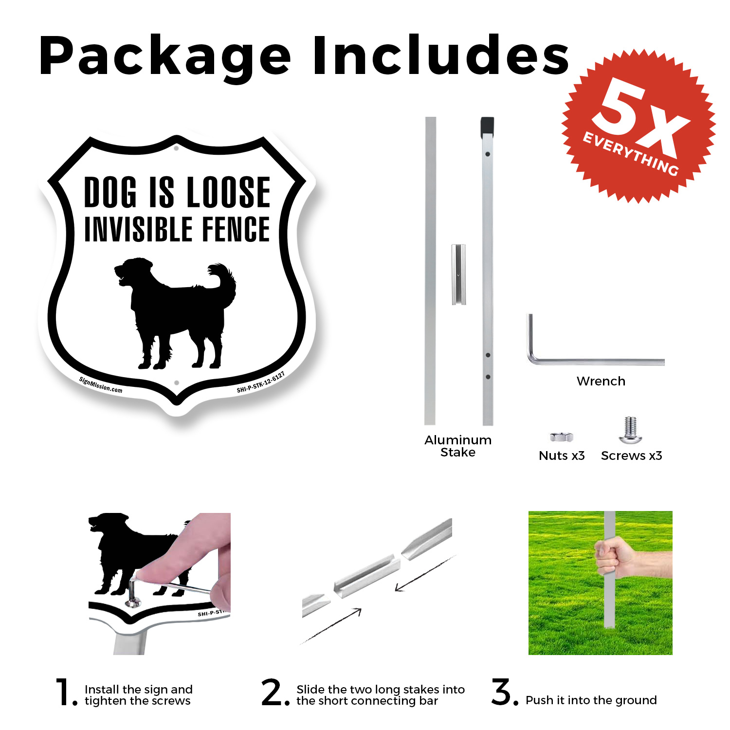 Dog Is Loose Invisible Fence Shield Shaped Sign With Stake Weather Resistant