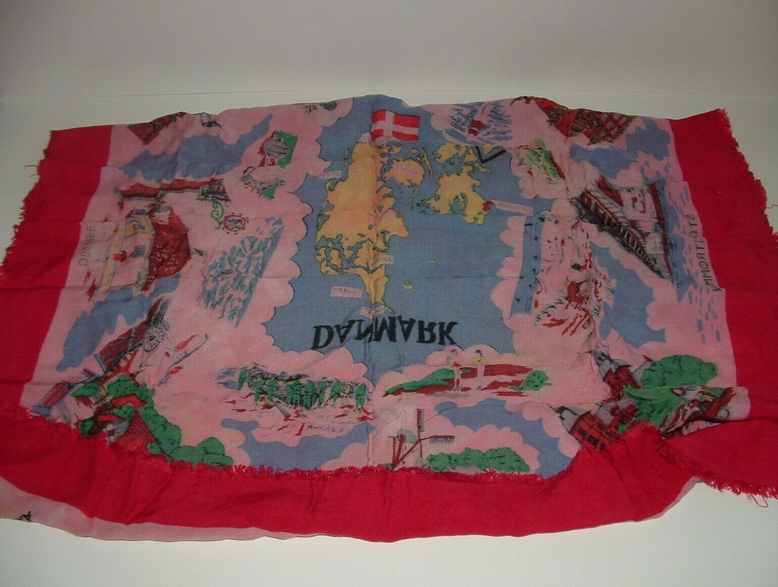 Danmark Denmark Map Design Scarf, 24 x 25, Vintage, pre-owned