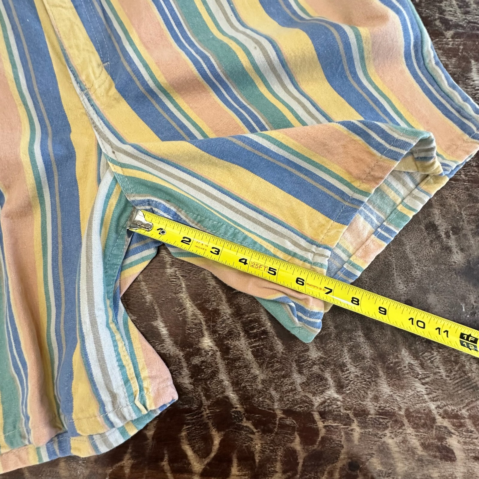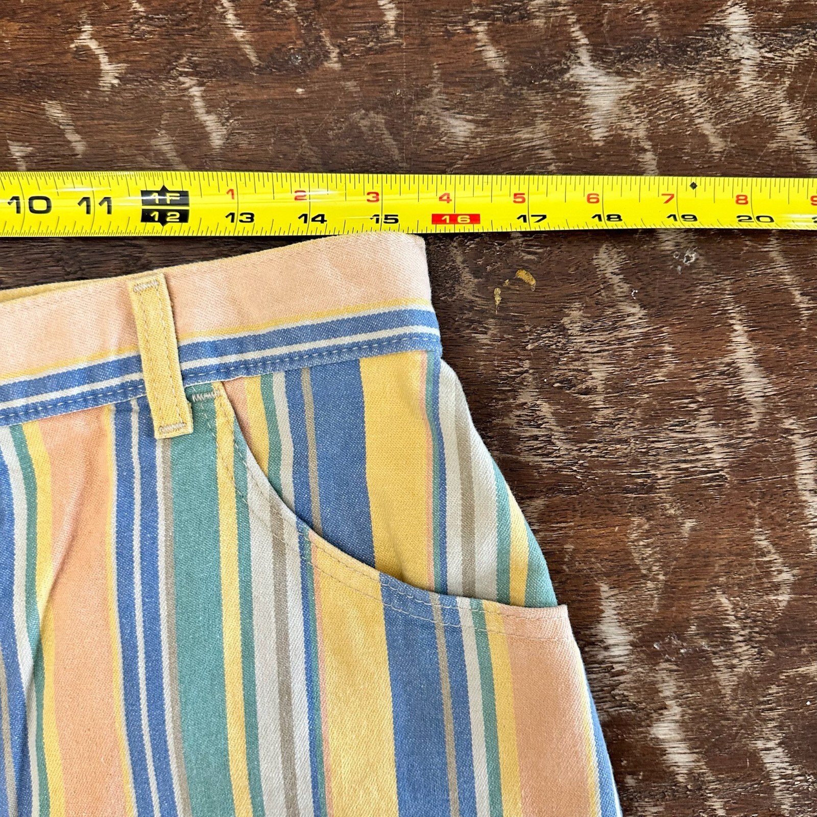 как выглядит Vintage Lee Striped Cotton Womens Shorts Rainbow Pastel 90s USA High Rise Sz 16P фото