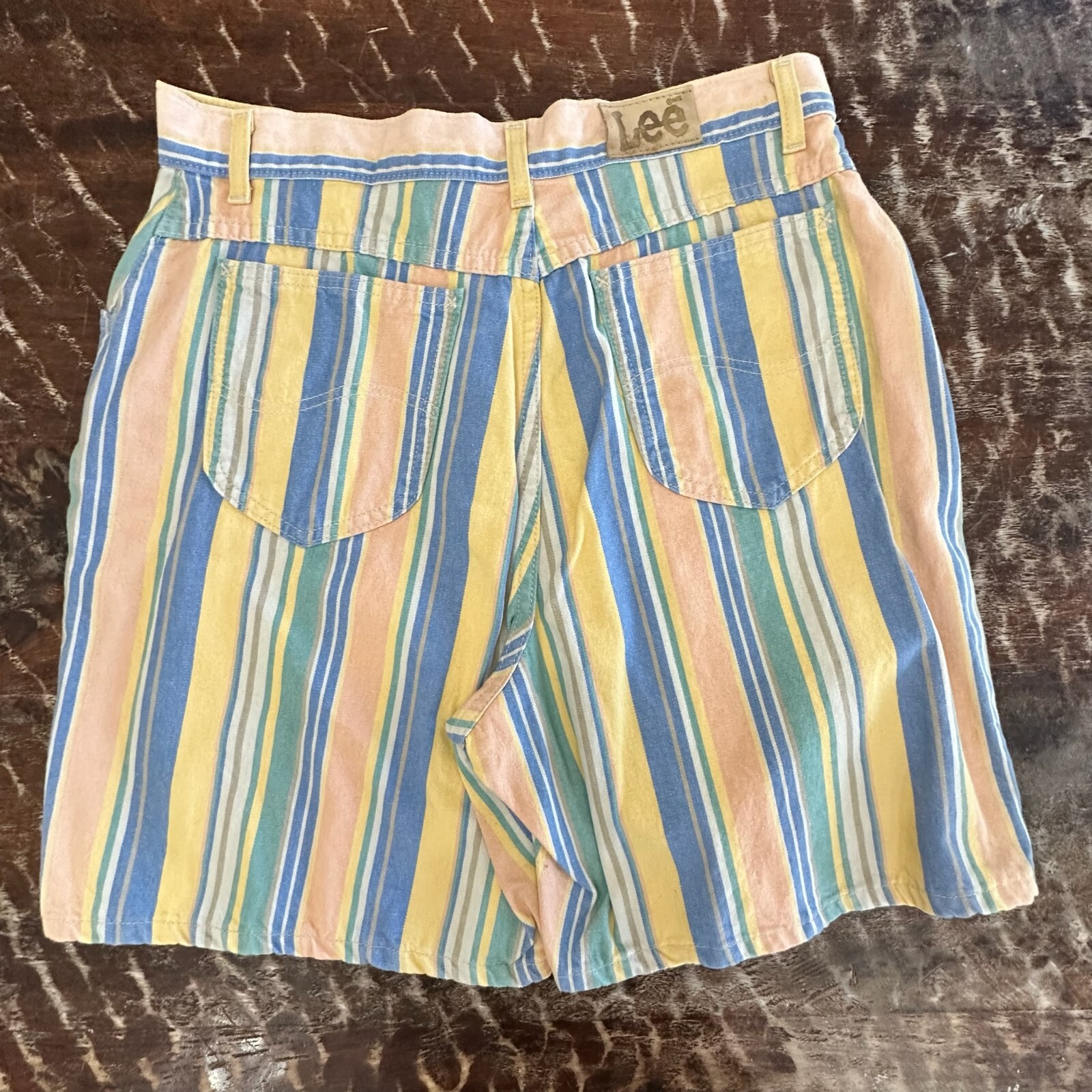 Vintage Lee Striped Cotton Womens Shorts Rainbow Pastel 90s USA High Rise Sz 16P