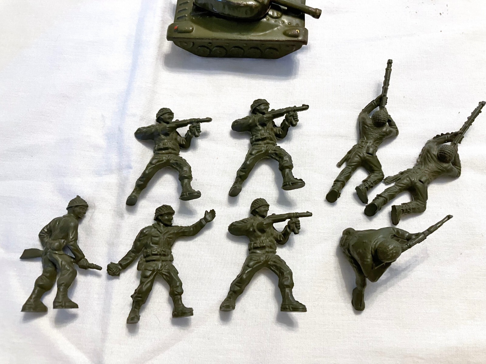 как выглядит Marx Vintage Army Men Toy Soldier Lot and Small Friction Army Tank фото
