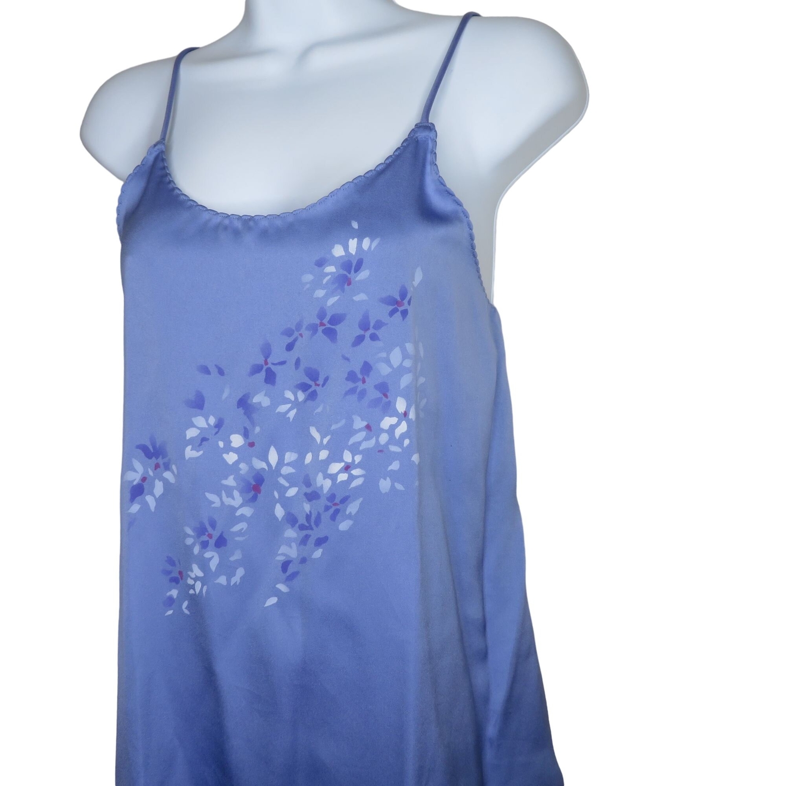 как выглядит Vintage 70s Val Mode Knee Length Satin Slip Nightgown Blue Floral Womens Medium фото