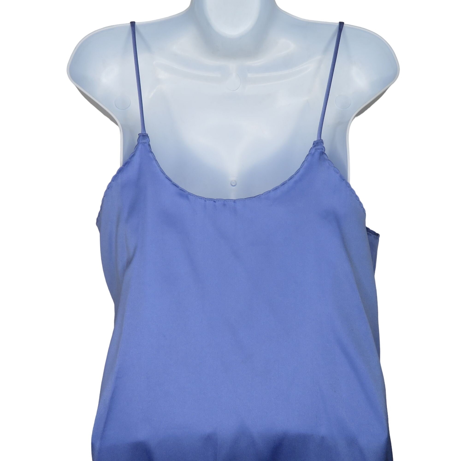 Vintage 70s Val Mode Knee Length Satin Slip Nightgown Blue Floral Womens Medium