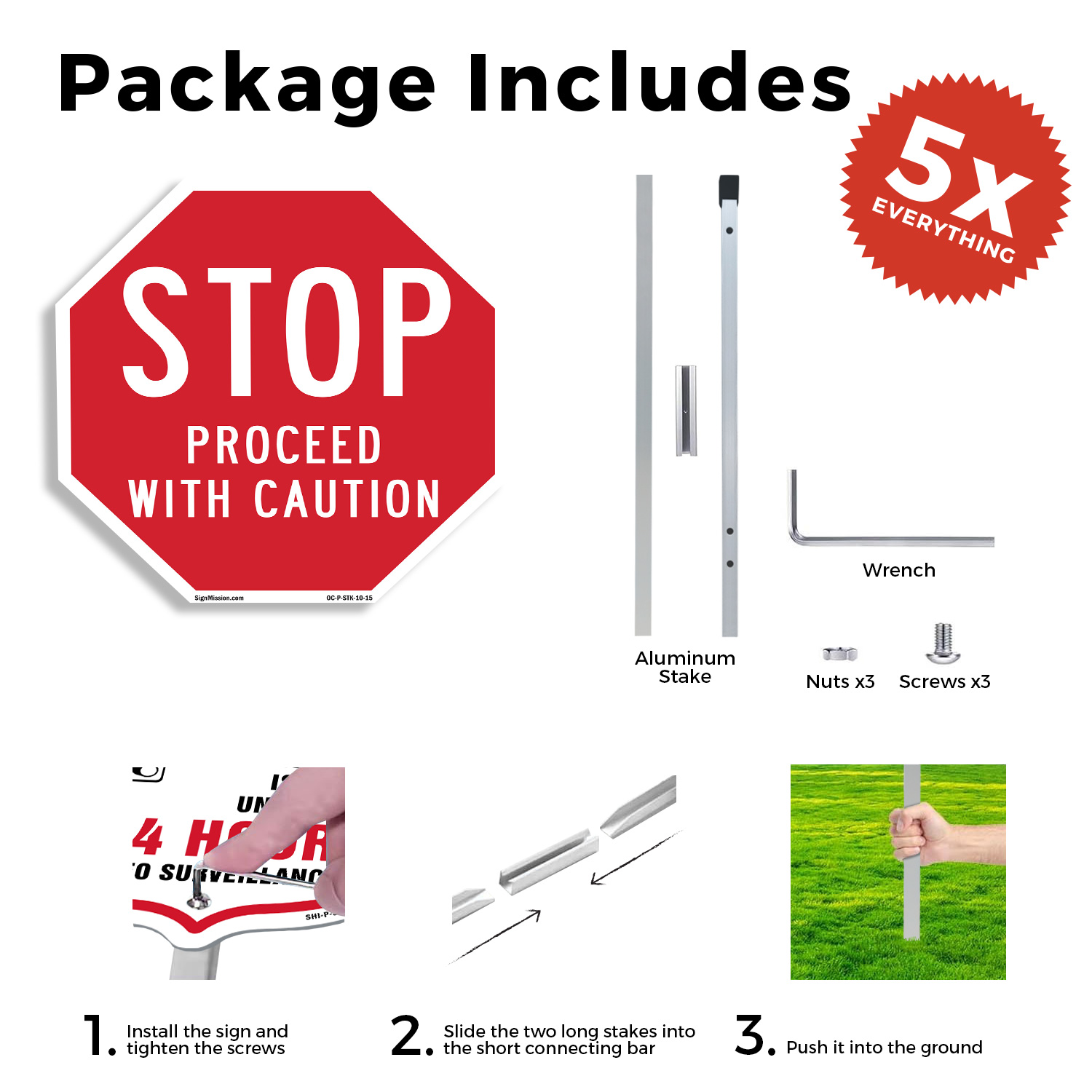 Stop Proceed with Caution Octagon Sign With Stake Weather Resistant