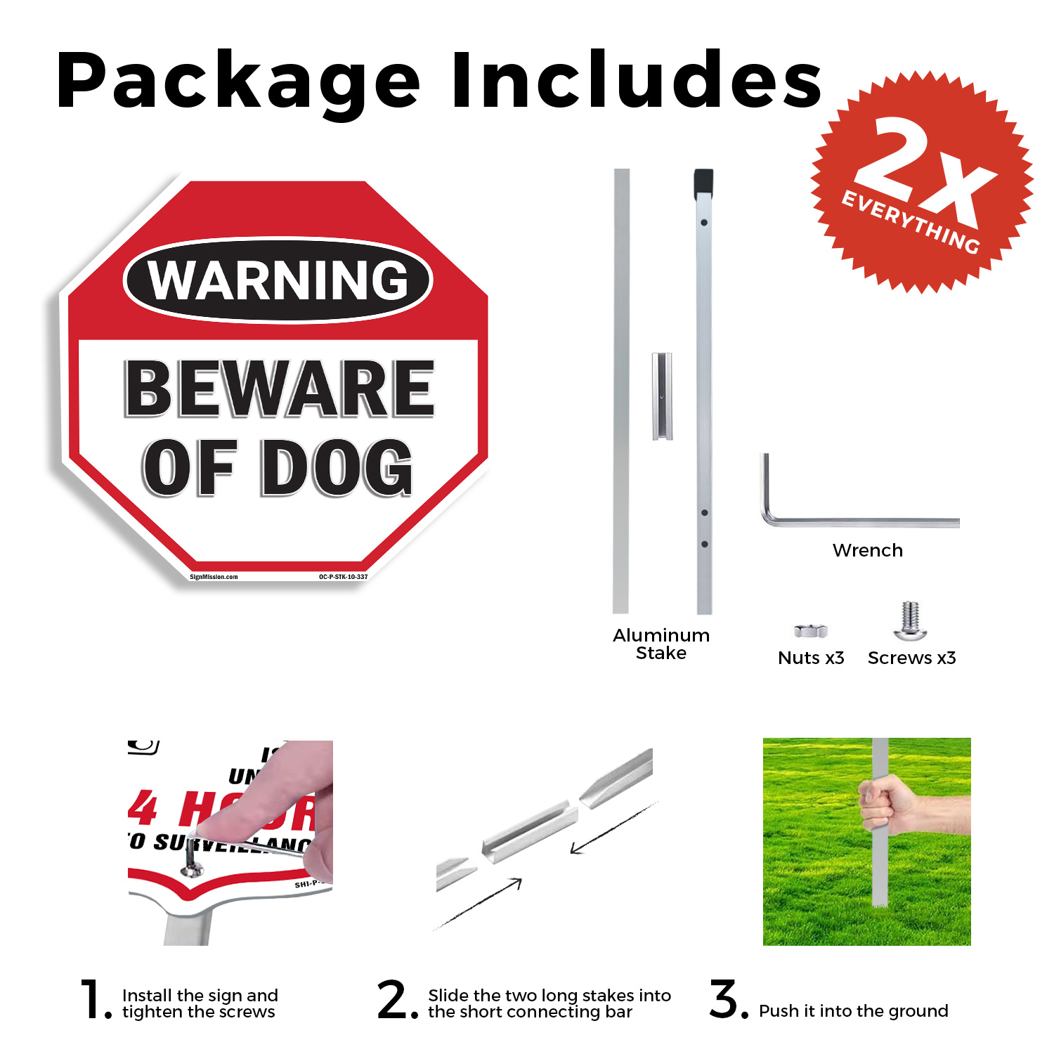 Warning Beware of Dog Octagon Sign With Stake Weather Resistant Made in the USA
