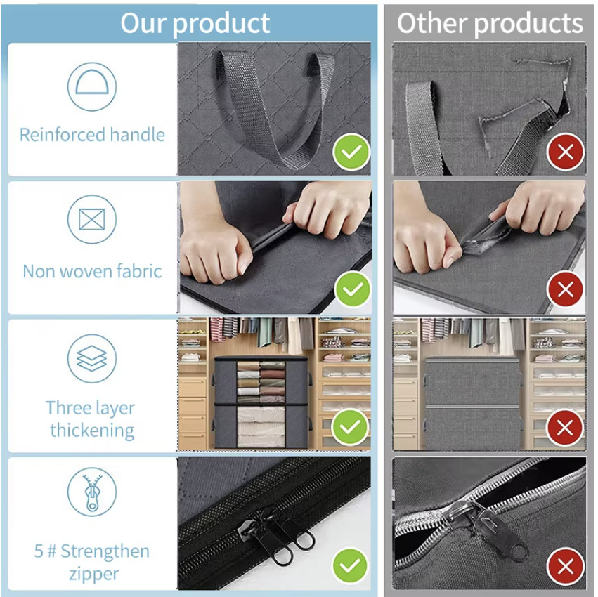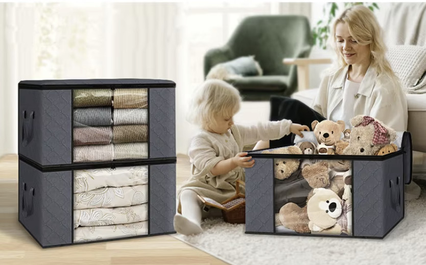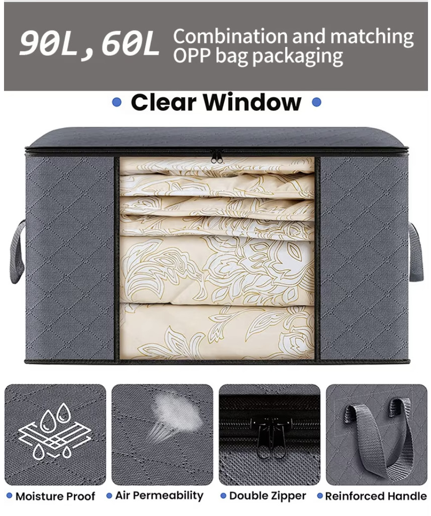 Double Zippered 60L Storage Bags for Bedding, Clothes, Clear Window Handles