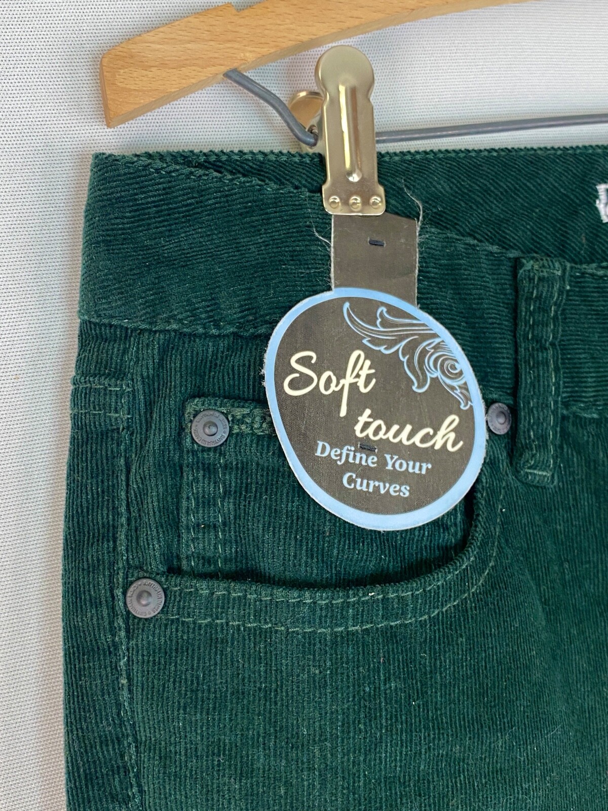 как выглядит NWT green corduroy pants RHYTHM IN BLUES skinny stretch dark forest vintage 6 фото