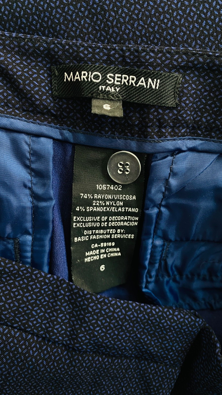 как выглядит MARIO SERRANI Italy blue dress pants, rayon patterned stretch straight leg фото