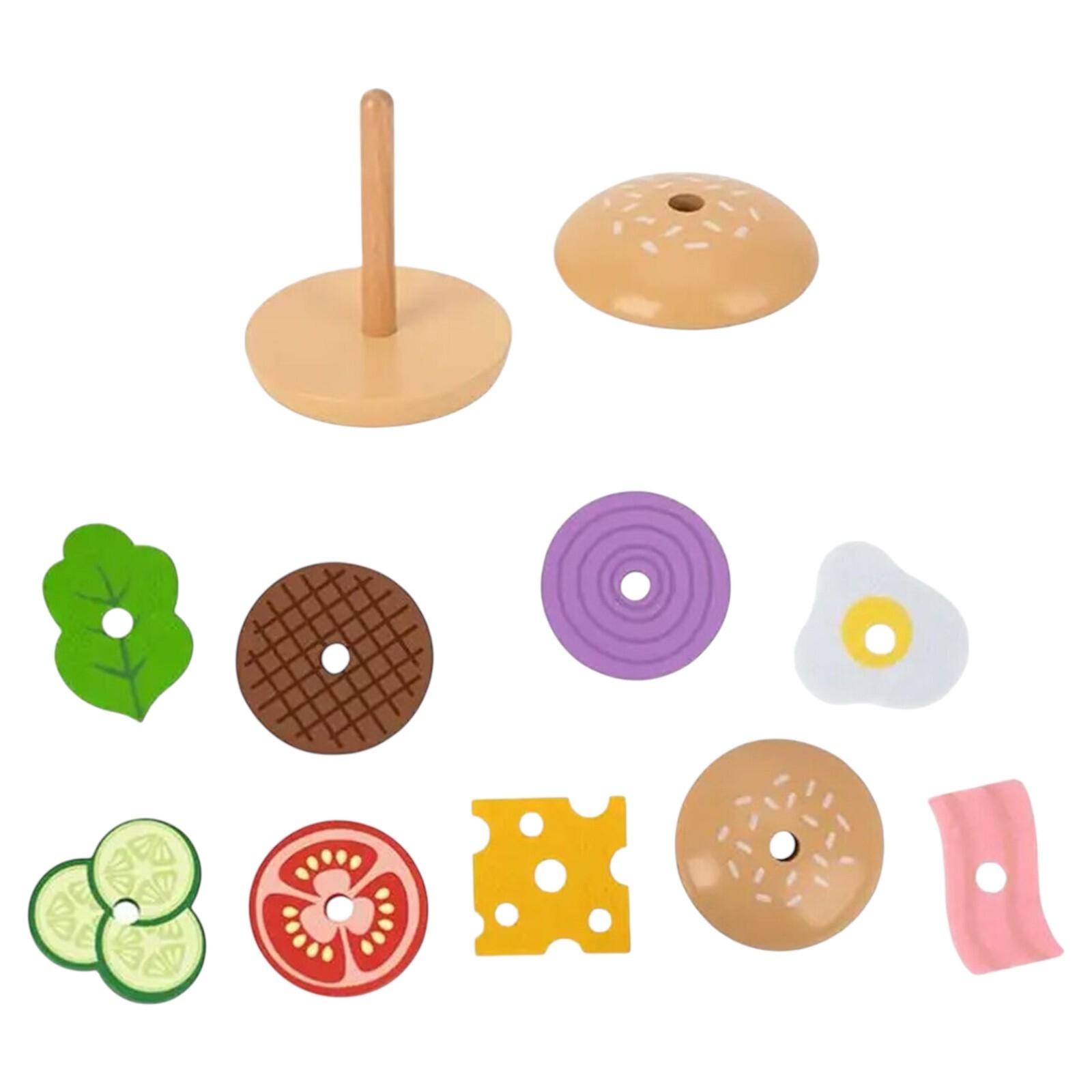 Make Your Own Burger 15 Piece Wooden Stackable Toy with 10 Order Cards
