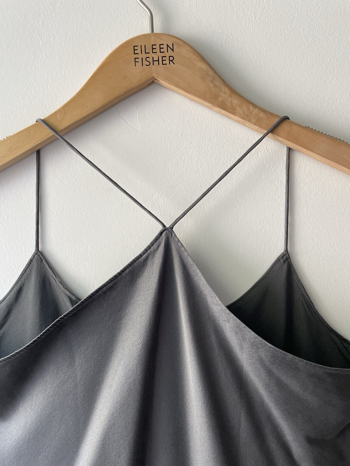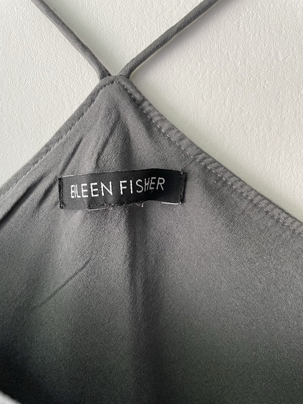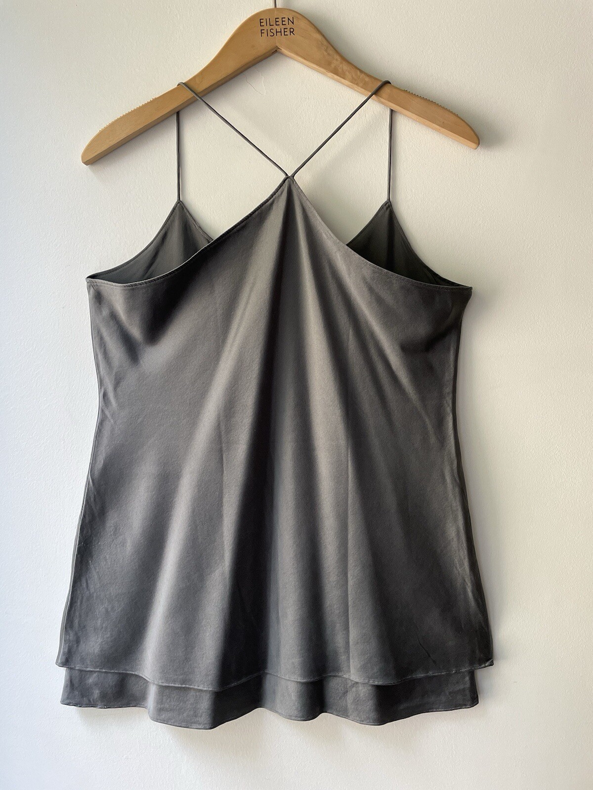 как выглядит EILEEN FISHER Grey Spaghetti Strap Racerback 2-Layer Silk Satin Camisole S фото