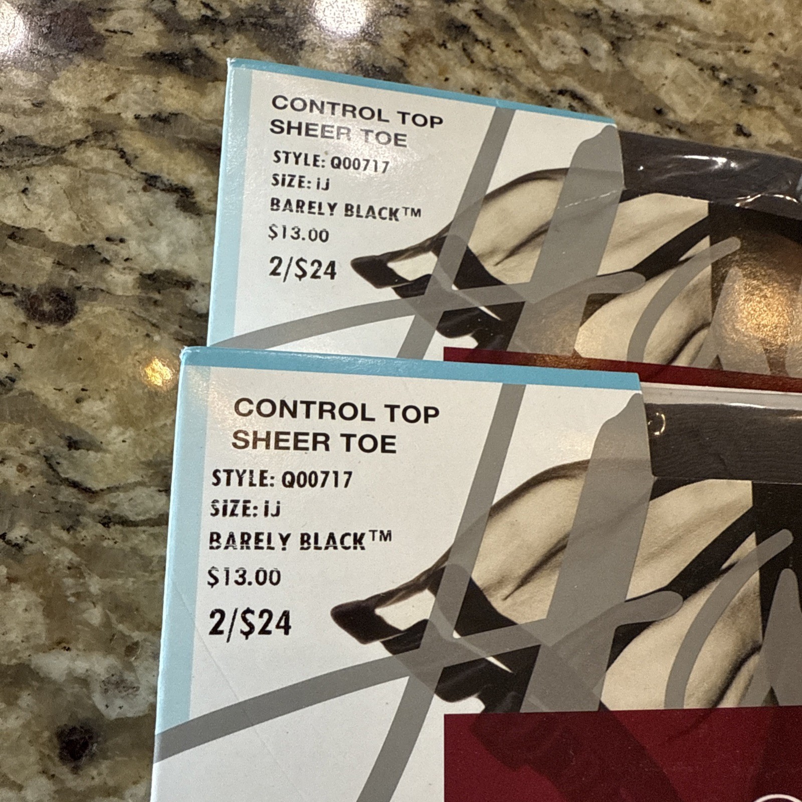 2 pr Hanes Silk Reflections Control Top Sheer Toe Pantyhose Barely Black Sz IJ