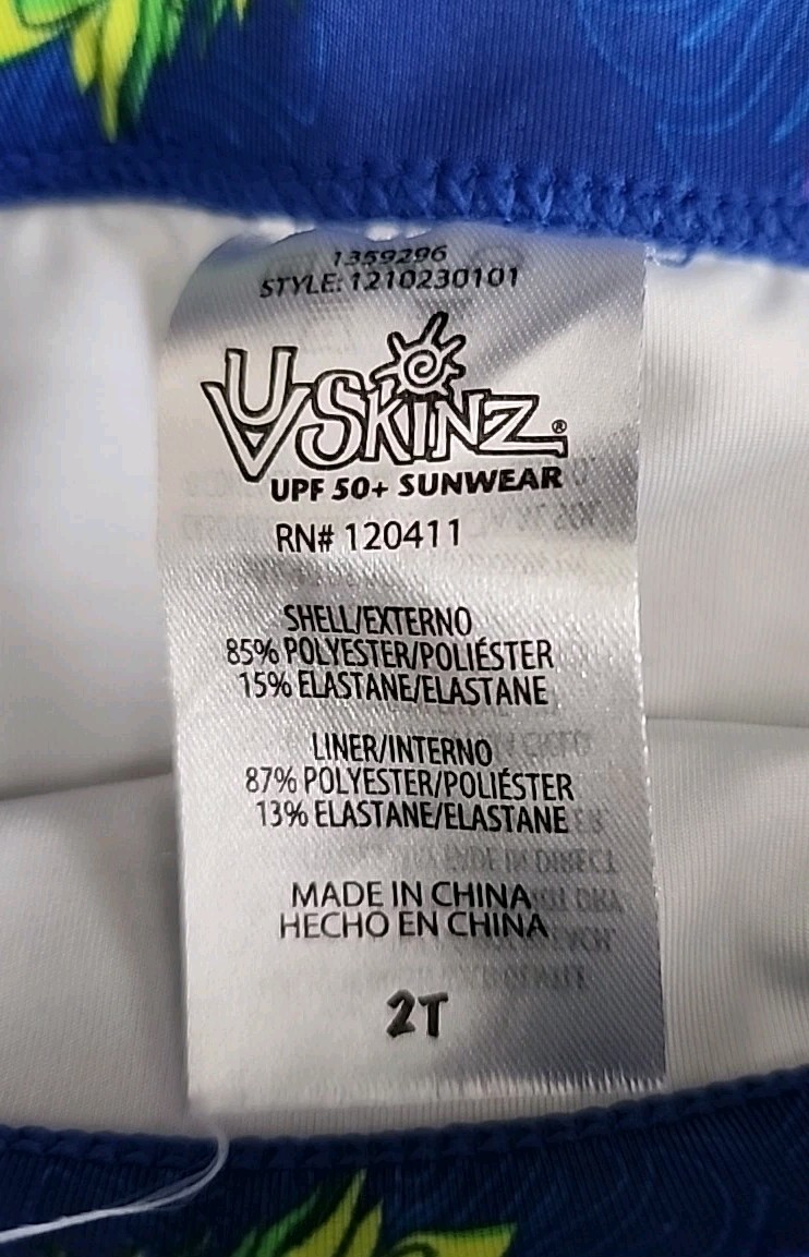 UV Skinz 3pc Sunwear Set 2T Blue Pineapple UPF 50 Shirt, Skirt, Bucket Hat