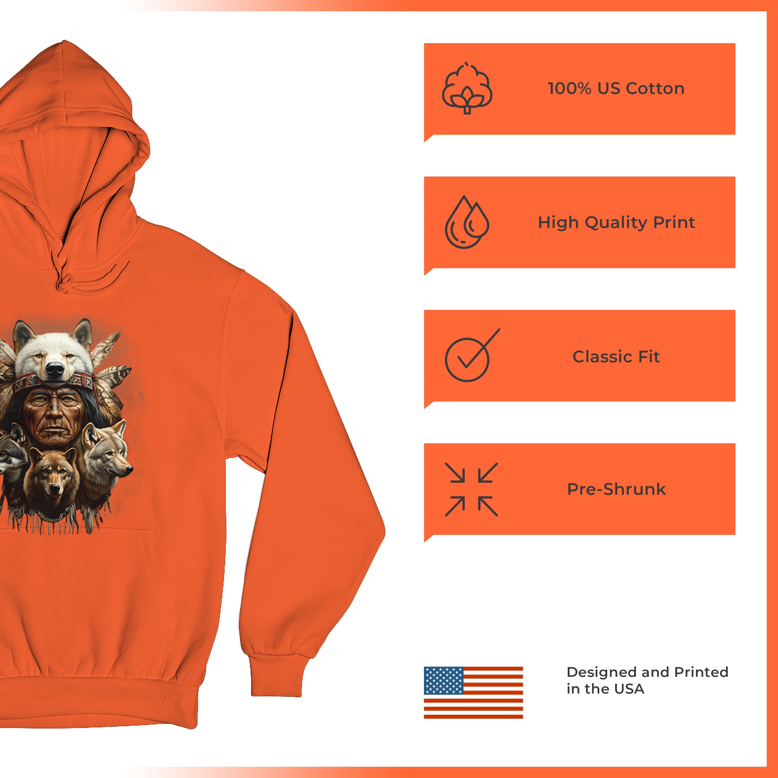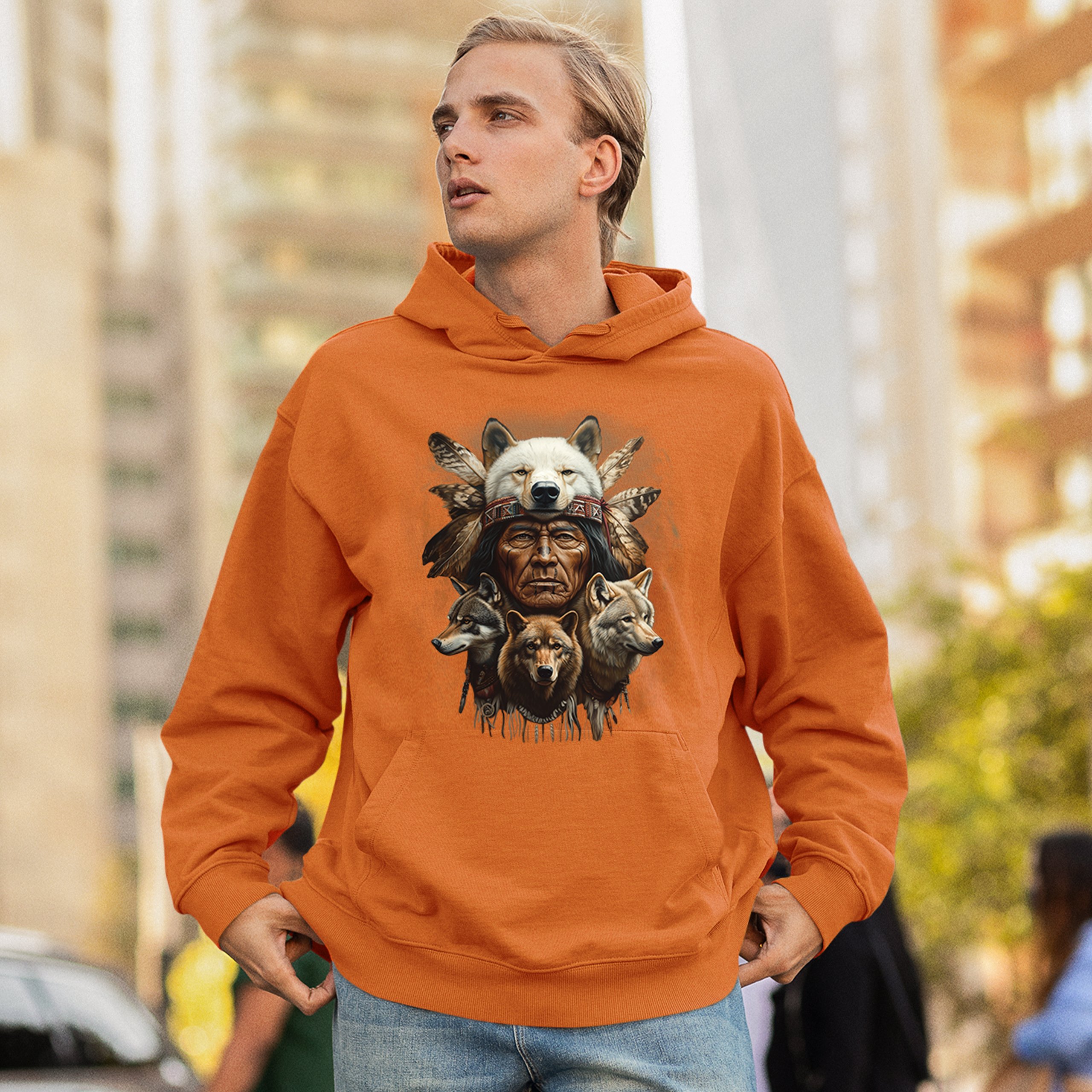 Native American Wolf Chief Sweatshirt Headdress Warrior Wolves Totem Hoodie