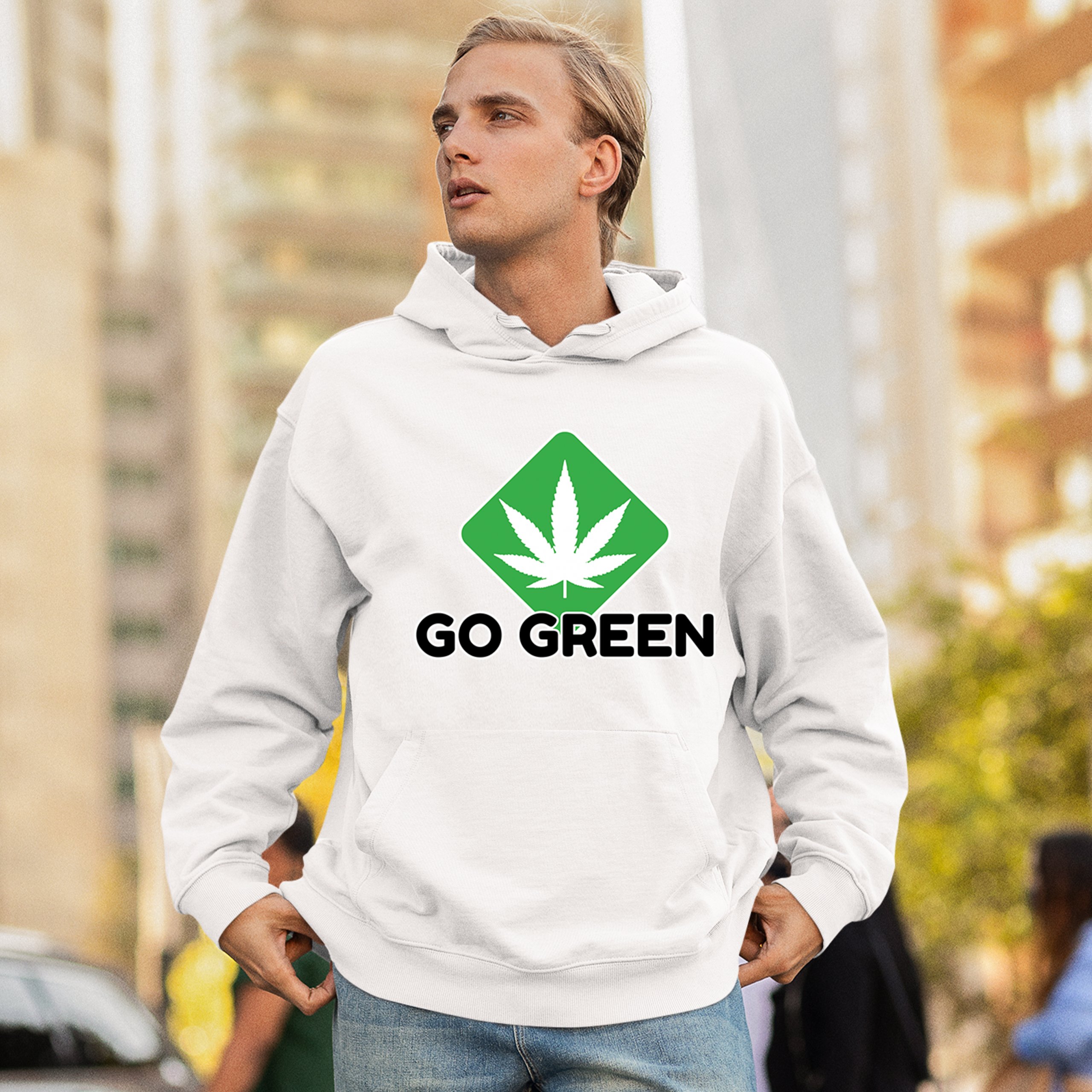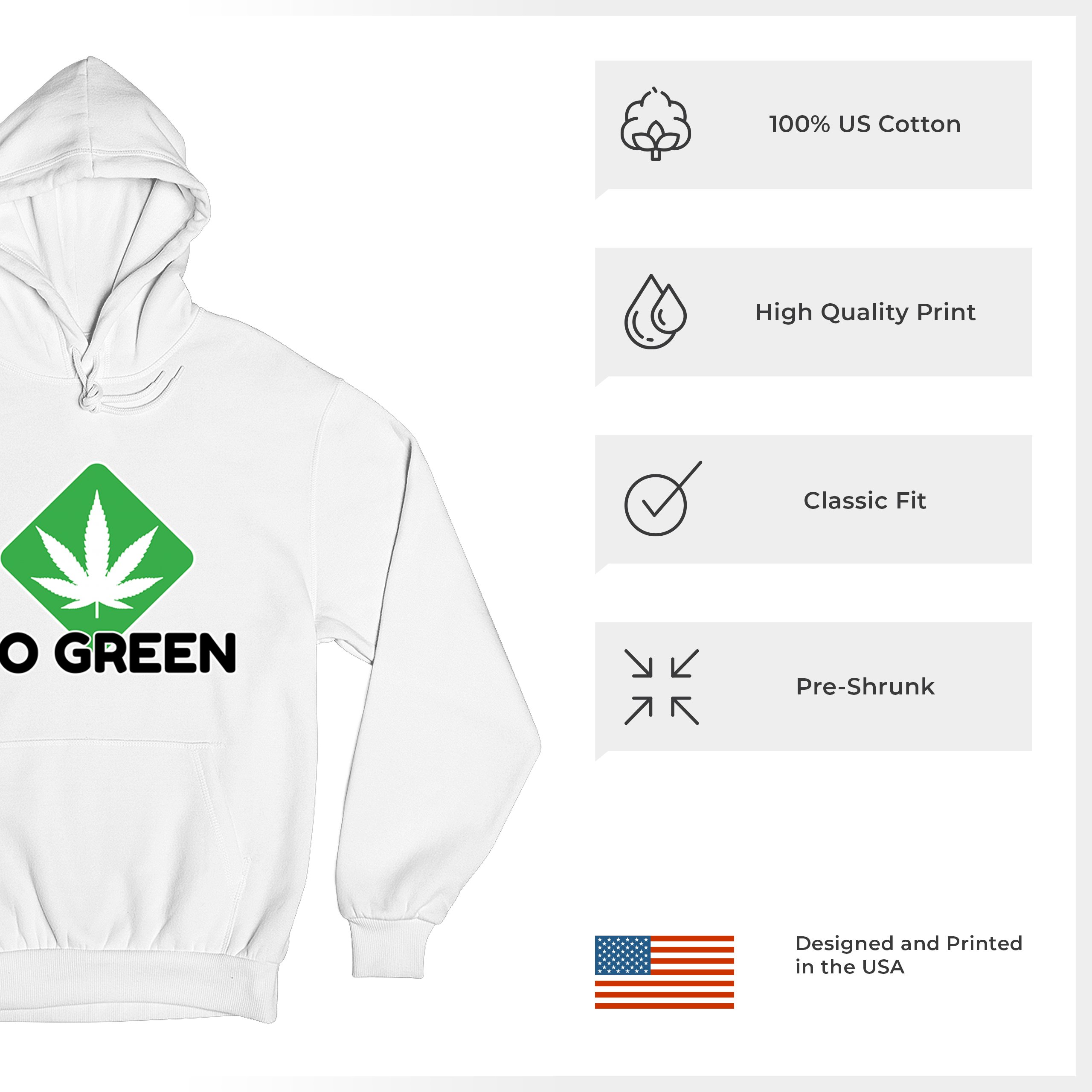 Go Green Weed Sweatshirt Cannabis Leaf Logo Eco 420 Marijuana Kush THC Hoodie
