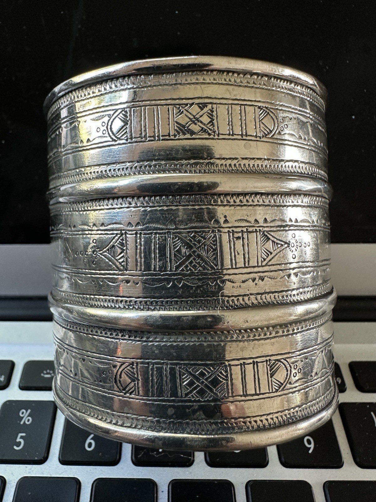 как выглядит Tuareg Silver Tradional Berber Open Cuff Bracelet Mixed Metals 3.25" Wide 7.5" фото