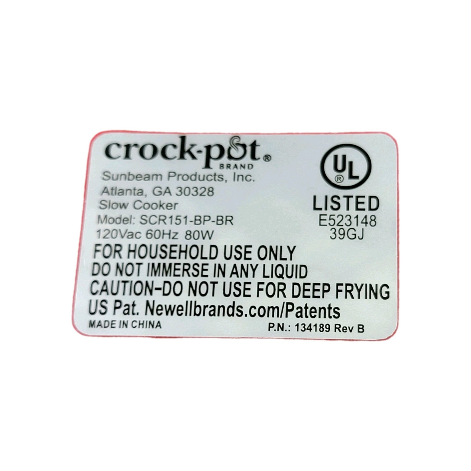 NEW ORIGINAL 1.5 QUART Crockpot SCR151-BP-BR ELECTRICAL POWER CORD PLUG IN PART