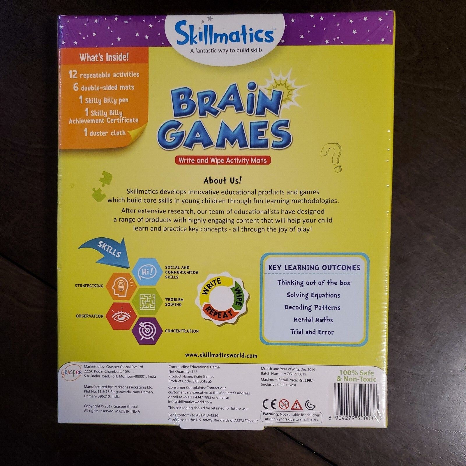 Skillmatics BRAIN GAMES write and Wipe Activity Mats, Ages 6-99 Years NEW SEALED