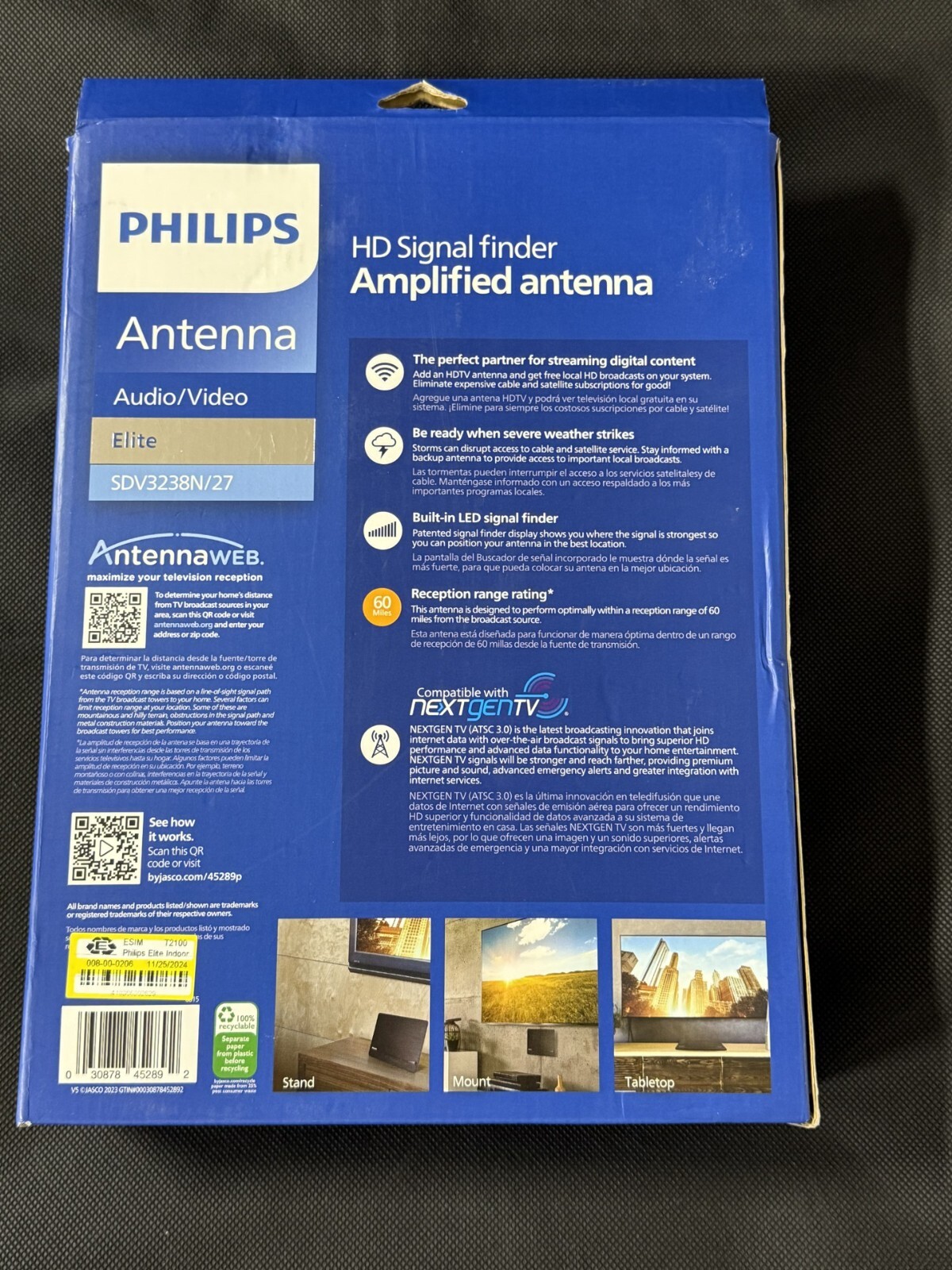 Philips Elite Indoor Amplified Signal Finder TV Antenna