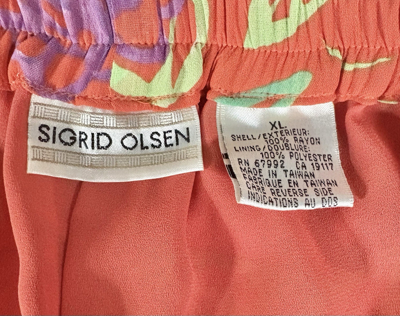 VTG Sigrid Olsen XL Pants Colorful Art To Wear Loose Elastic Waist Lined 1996