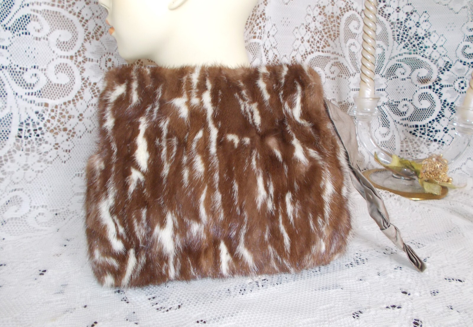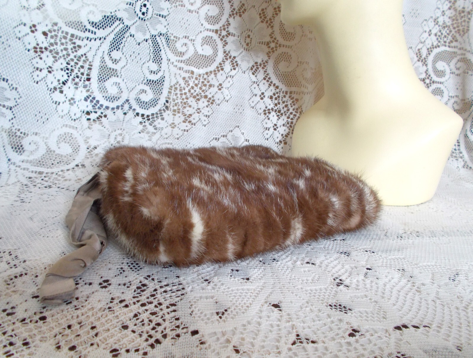 Vintage Two Tone Honey Brown Cream Mink Fur Muff Handwarmer 10