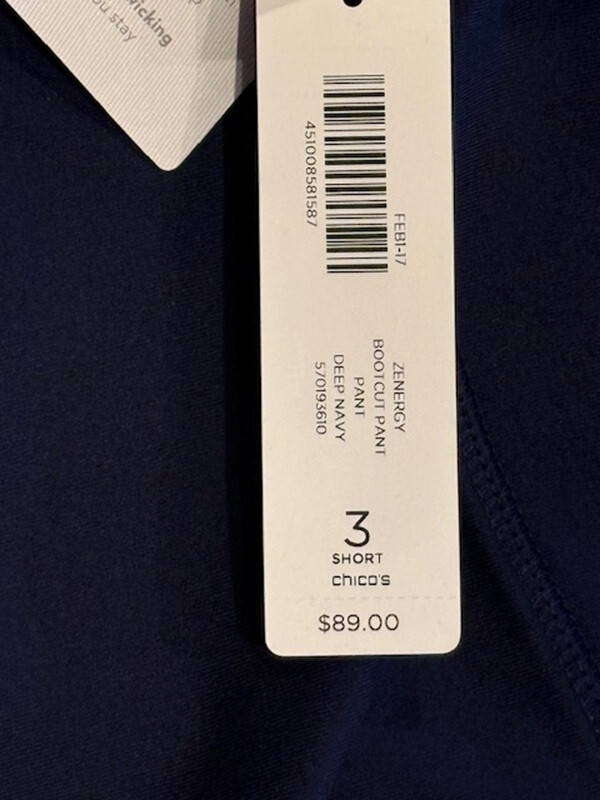 Chico's Zenergy Bootcut Pant Deep Navy Size 3 Short