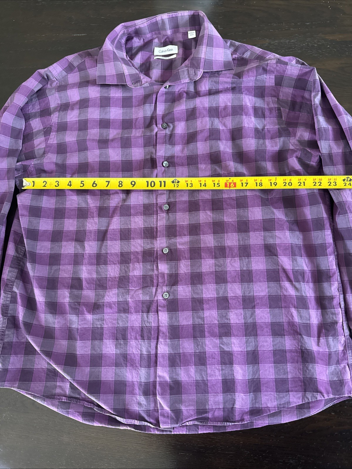 как выглядит Mens CALVIN KLEIN Purple Plaid Long Sleeve Dress Shirt Sz XL 17-17.5 34/35 фото