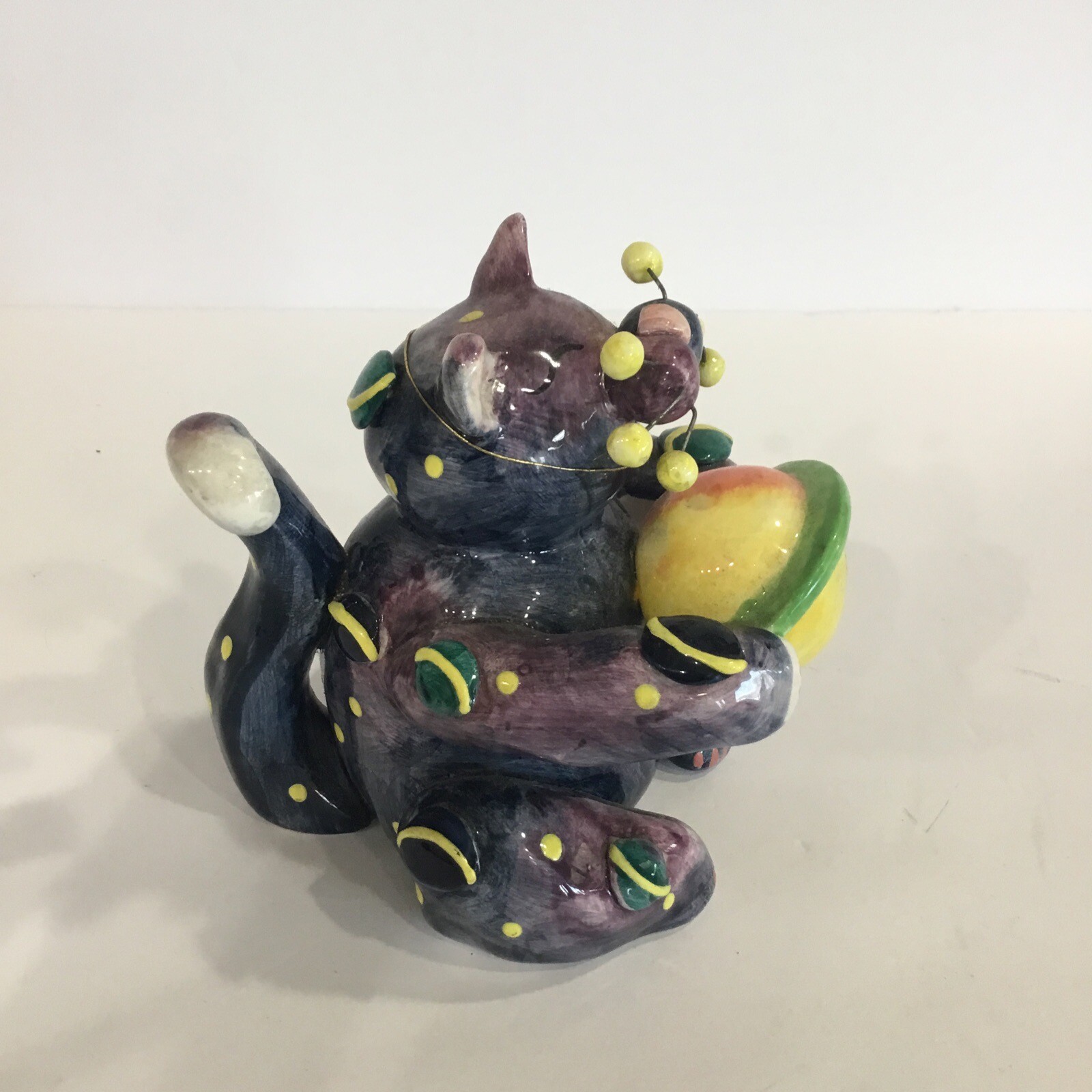 как выглядит WhimsiClay Purple and Blue Planet Cat 2002 Amy Lacombe Annaco фото