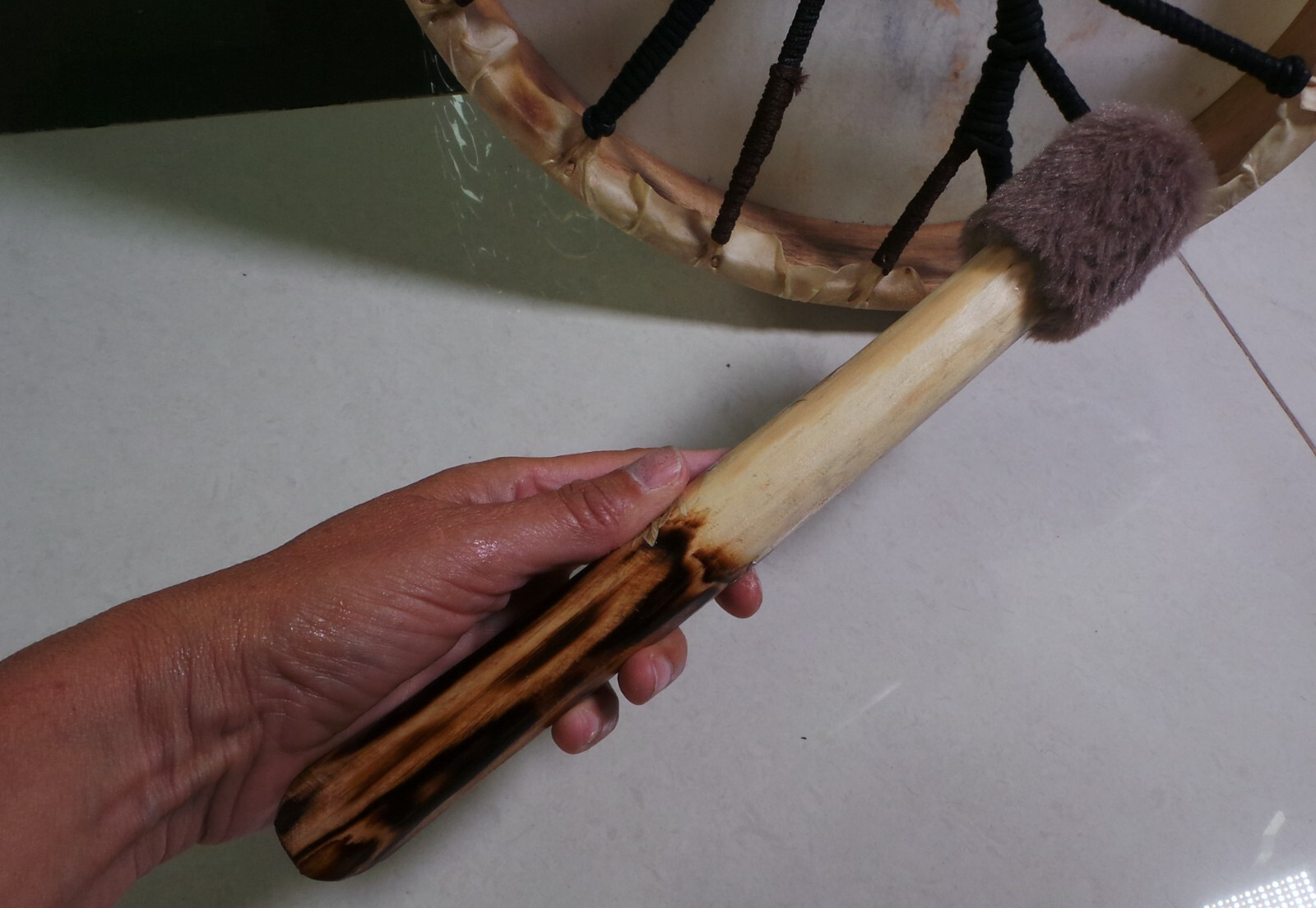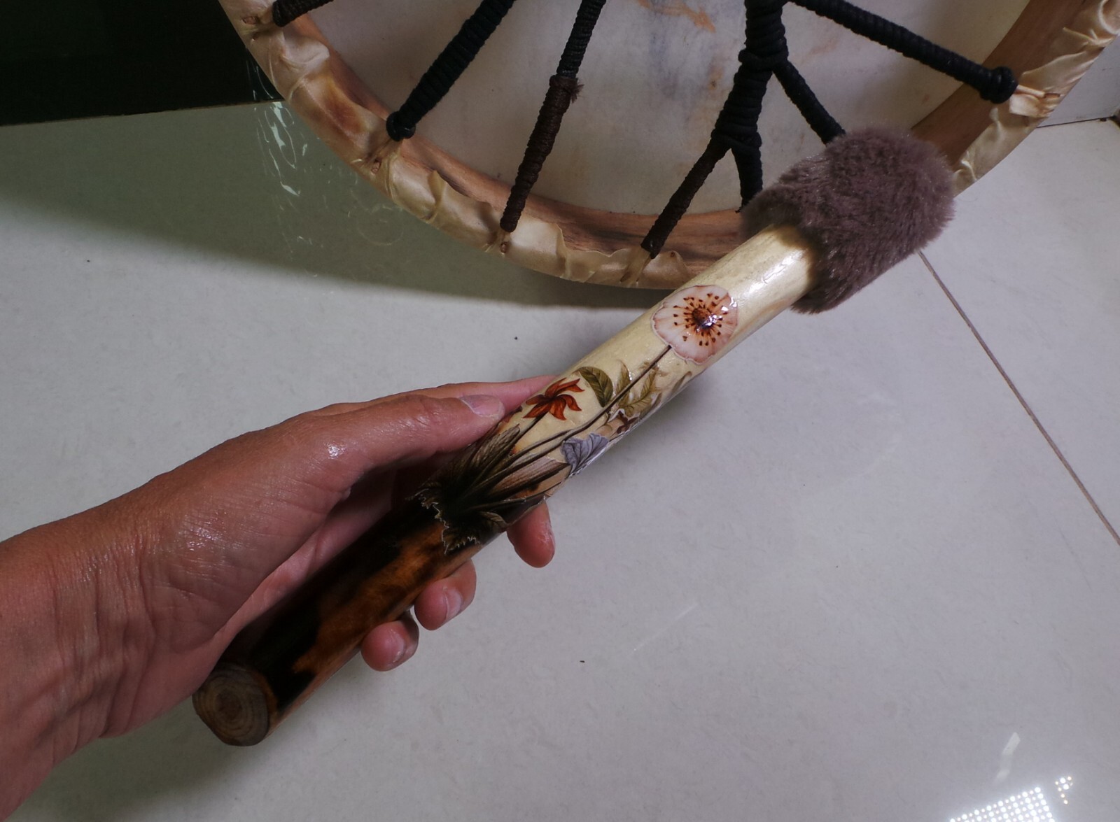 Drumbeater Floral artwork shamanic drumstick, skin or vegan drum, healing drum