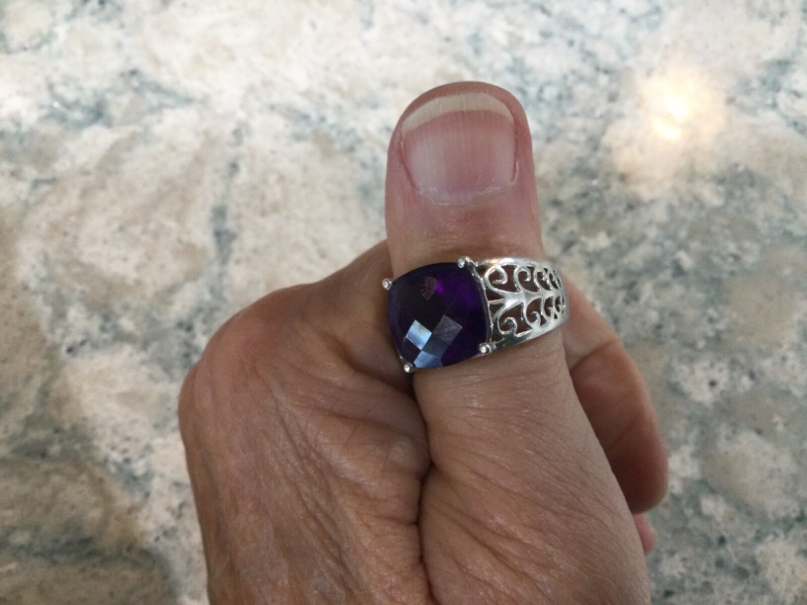 как выглядит Vintage 925 Sterling Silver Cushion-Cut Amethyst Cocktail Statement Ring фото