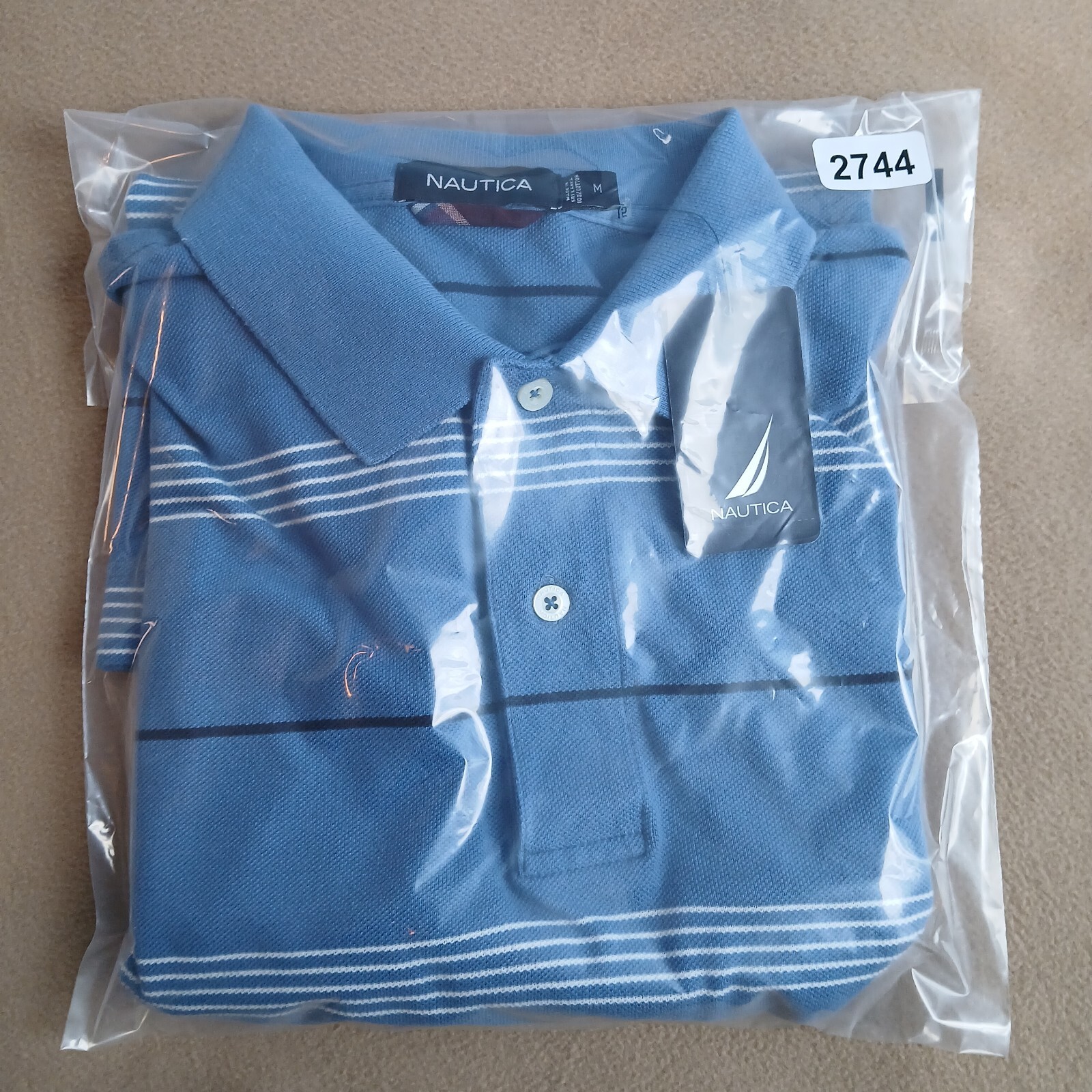 как выглядит Nautica Mens Short Sleeve Polo Shirt Size M Blue Striped NWT фото