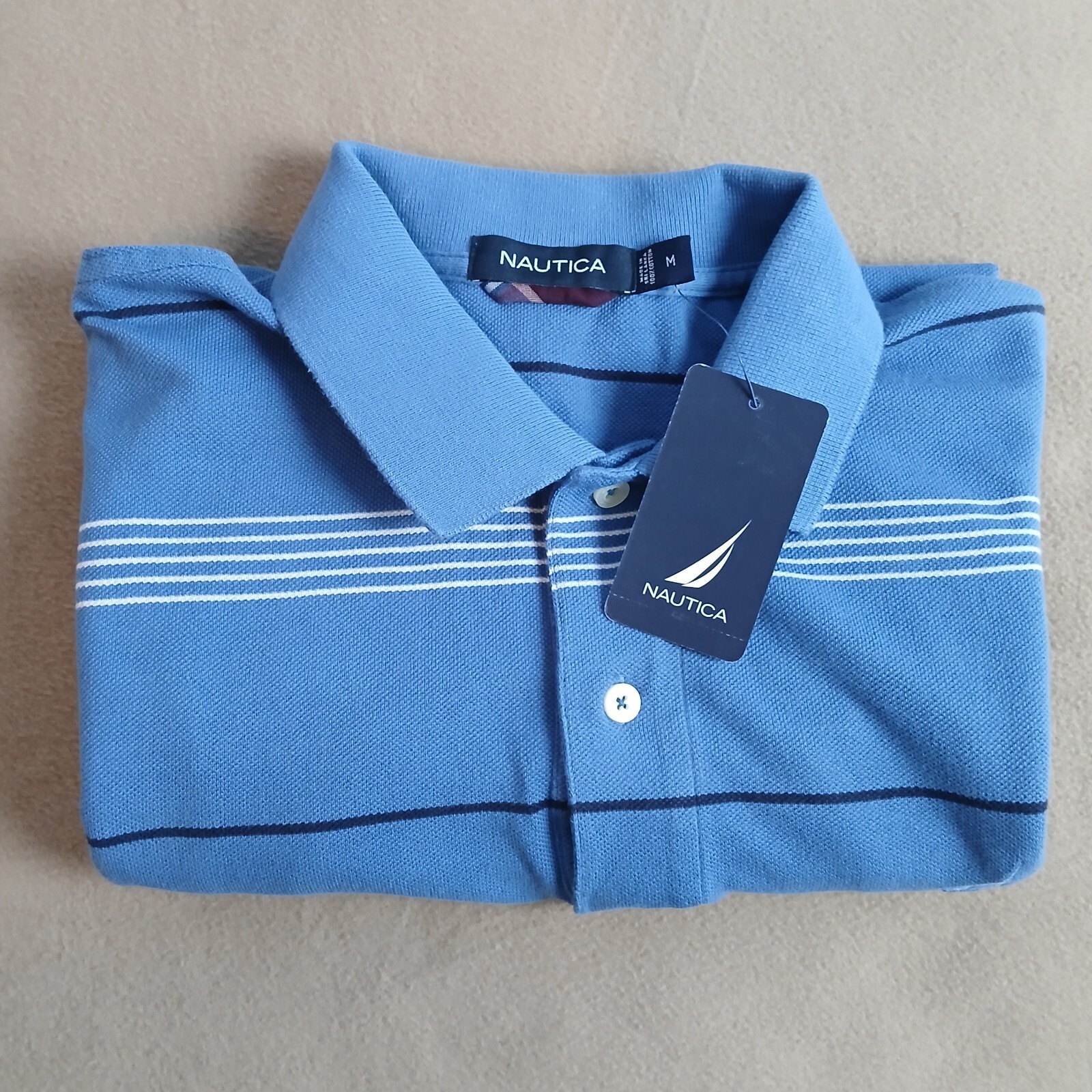 Nautica Men's Short Sleeve Polo Shirt Size M Blue Striped NWT